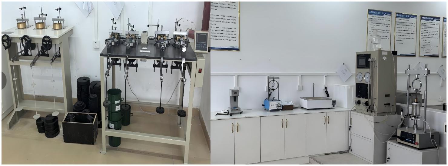 该实验室主要设备:土壤固结仪、土壤剪切仪、应变控制三轴试验机、联合液塑限测定仪等检测设备。该实验室开出的主要课程实验有:(1)土壤剪切实验;(2)土壤固结实验;(3)土的界限含水率实验、土的筛分实验等相关实验。