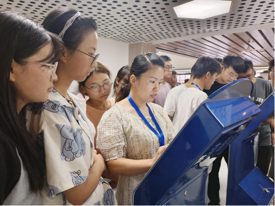 二、四楼阅览区及电子阅览室介绍。阅览区了解结束后组织学生到四楼电子阅览室,由何正直老师、周博宇老师主讲,学生助理协助介绍四楼基本情况(包含电子阅览室、四楼主藏图书类别),其中着重介绍数字资源(电子书、数据库)的使用方法,以帮助学生快速完成文献资源的查找和下载。