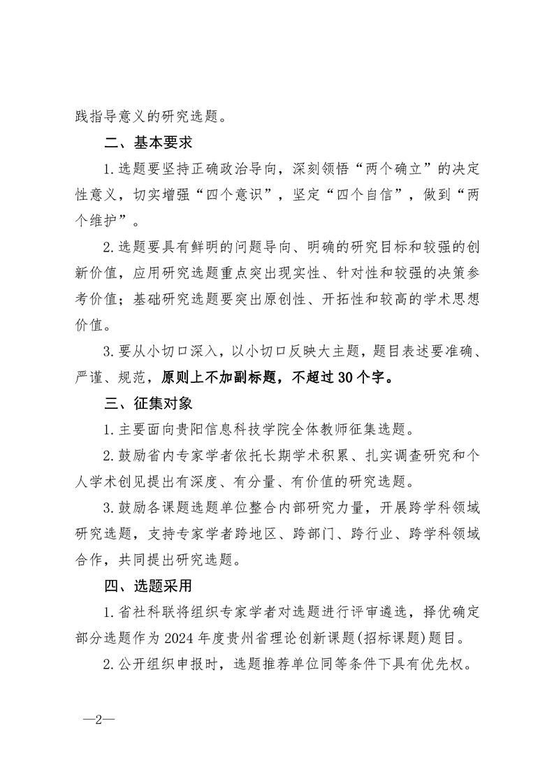 beat365在线唯一官网关于征集2024年度贵州省理论创新课题(招标课题)选题的通知