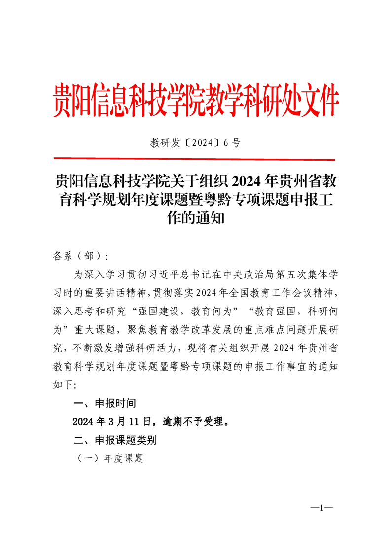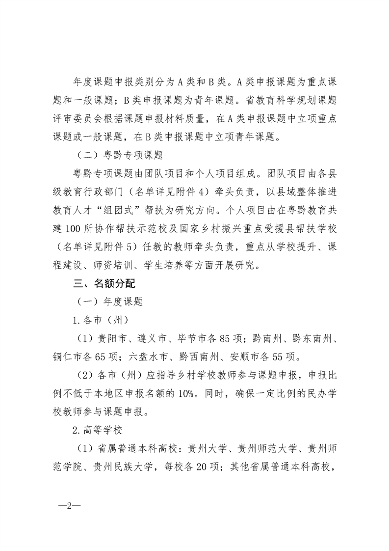 beat365在线唯一官网关于组织2024年贵州省教育科学规划年度课题暨粤黔专项课题申报工作的通知
