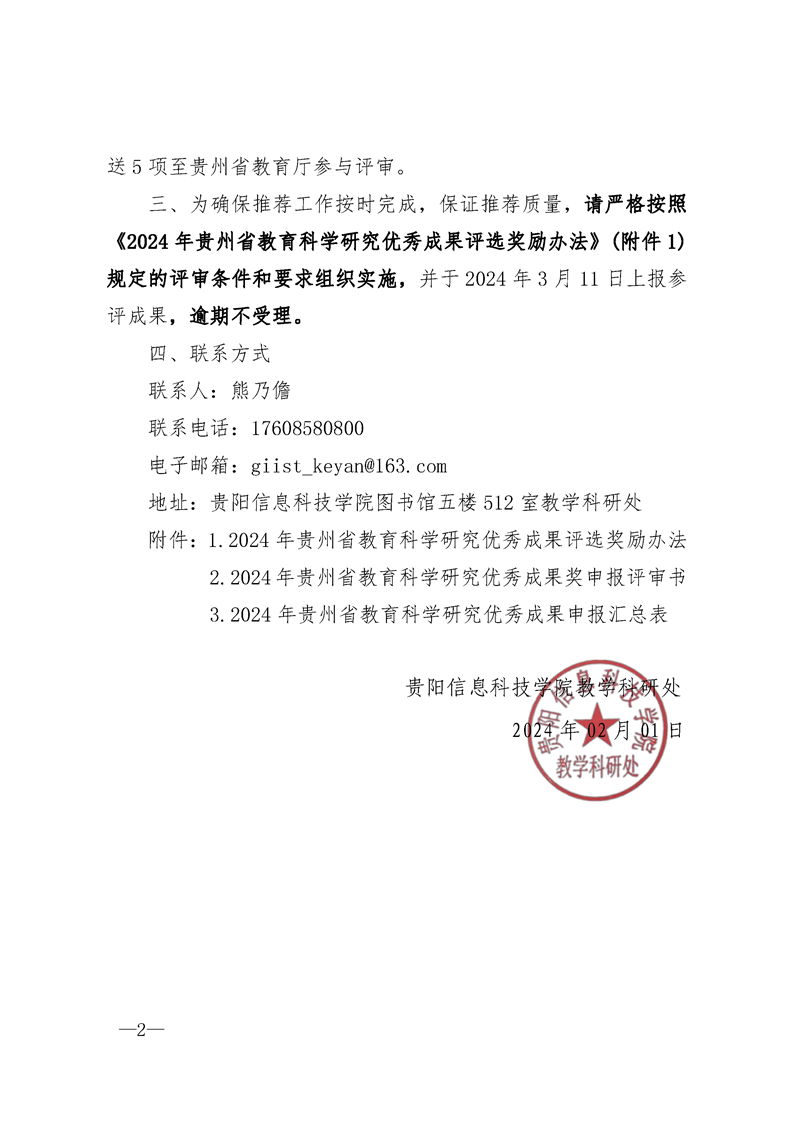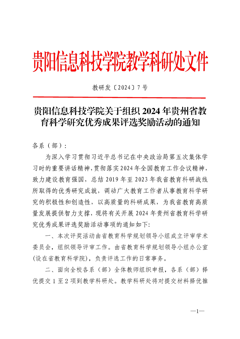 beat365在线唯一官网关于组织2024年贵州省教育科学研究优秀成果评选奖励活动的通知