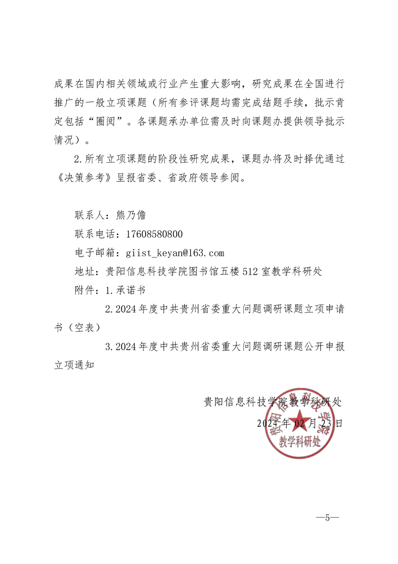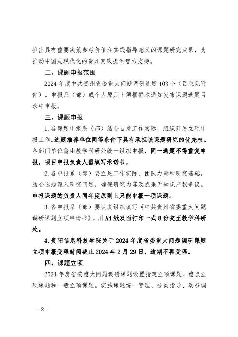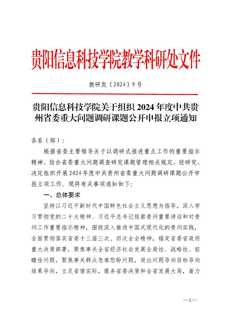 beat365在线唯一官网关于组织2024年度中共贵州省委重大问题调研课题公开申报立项通知