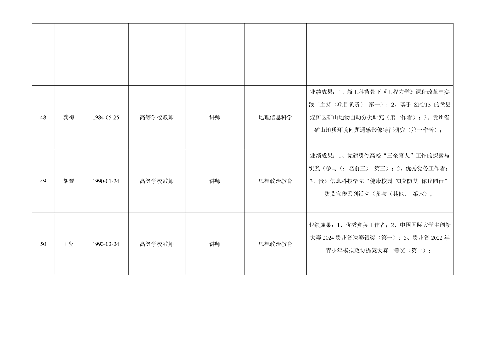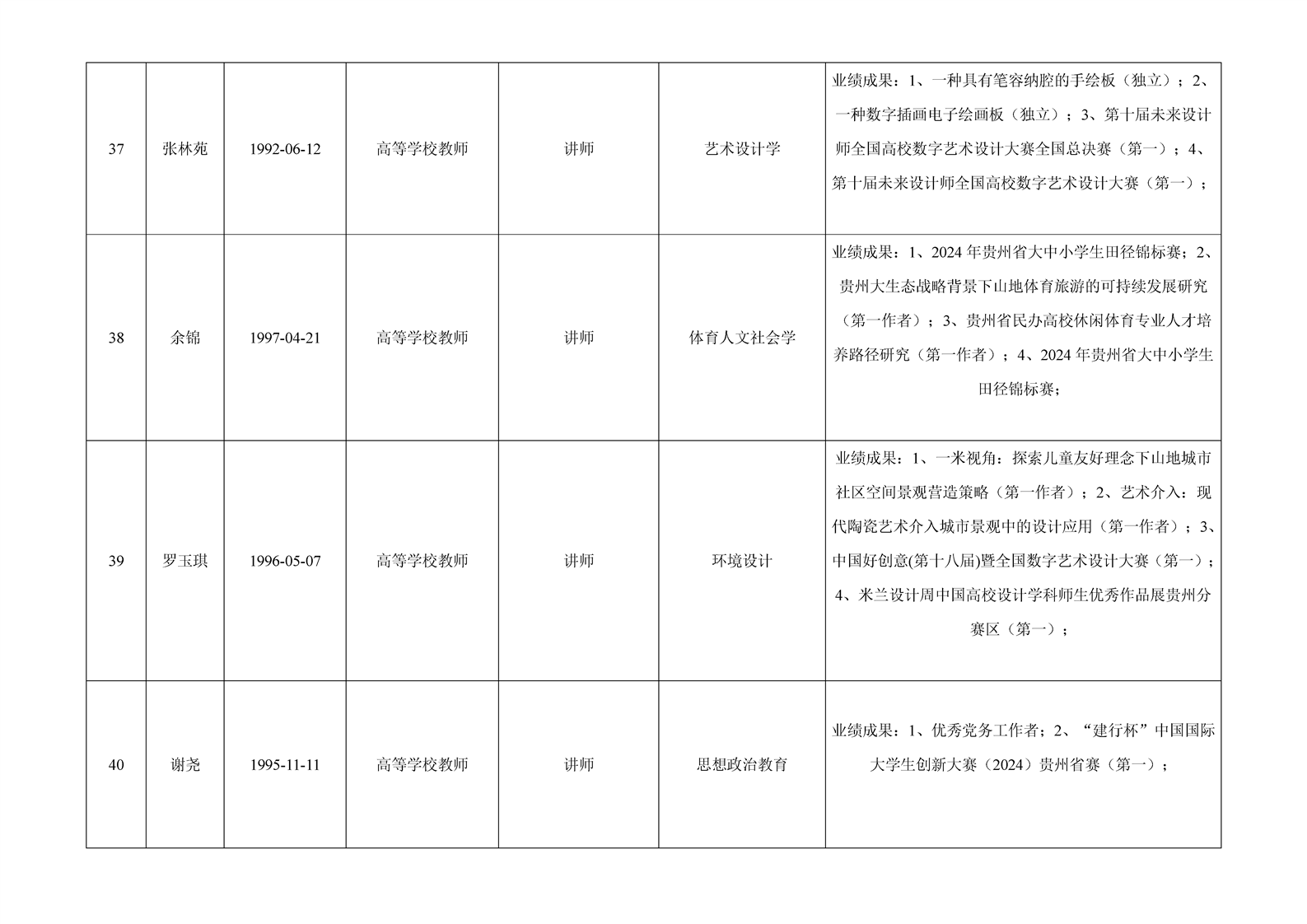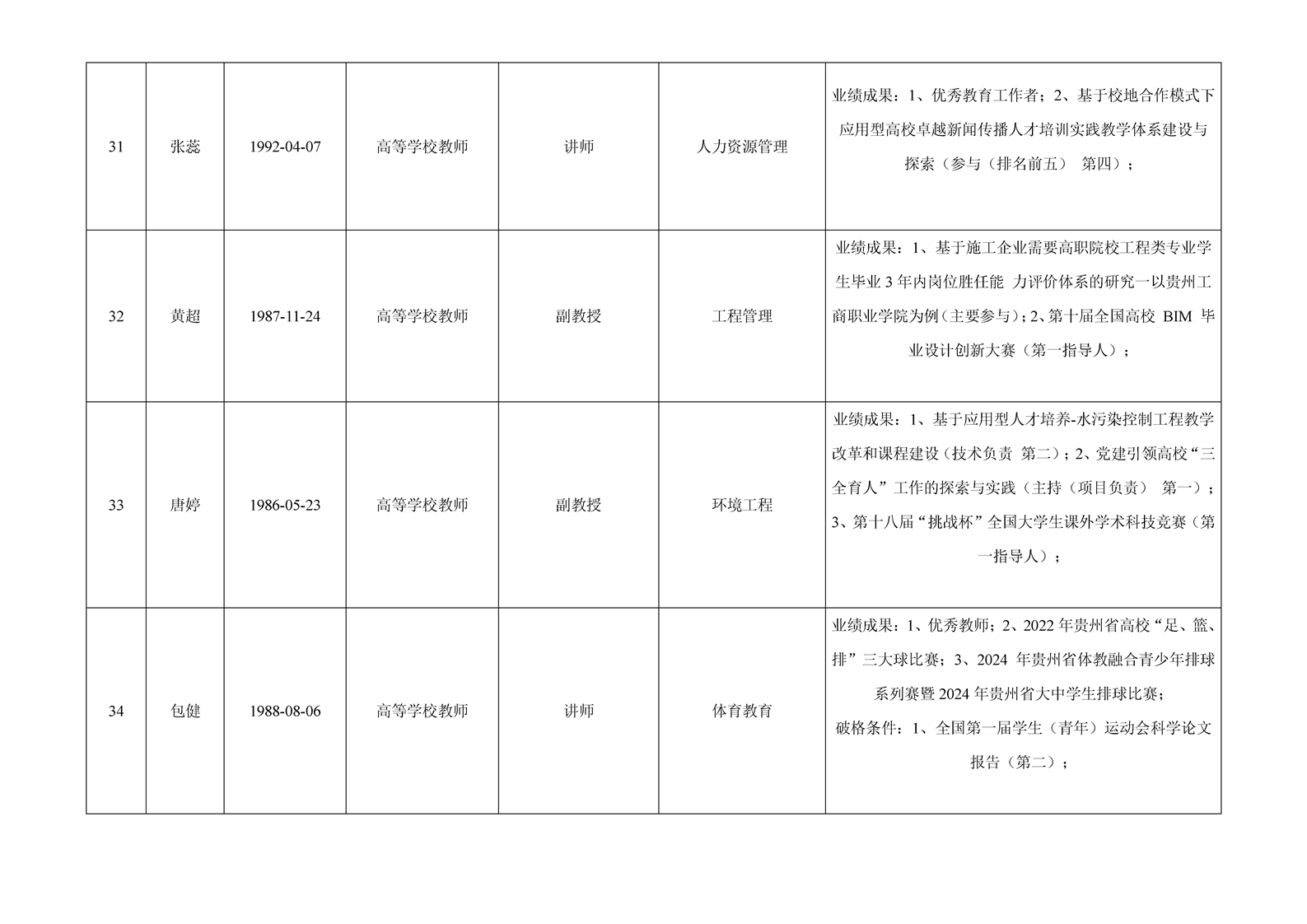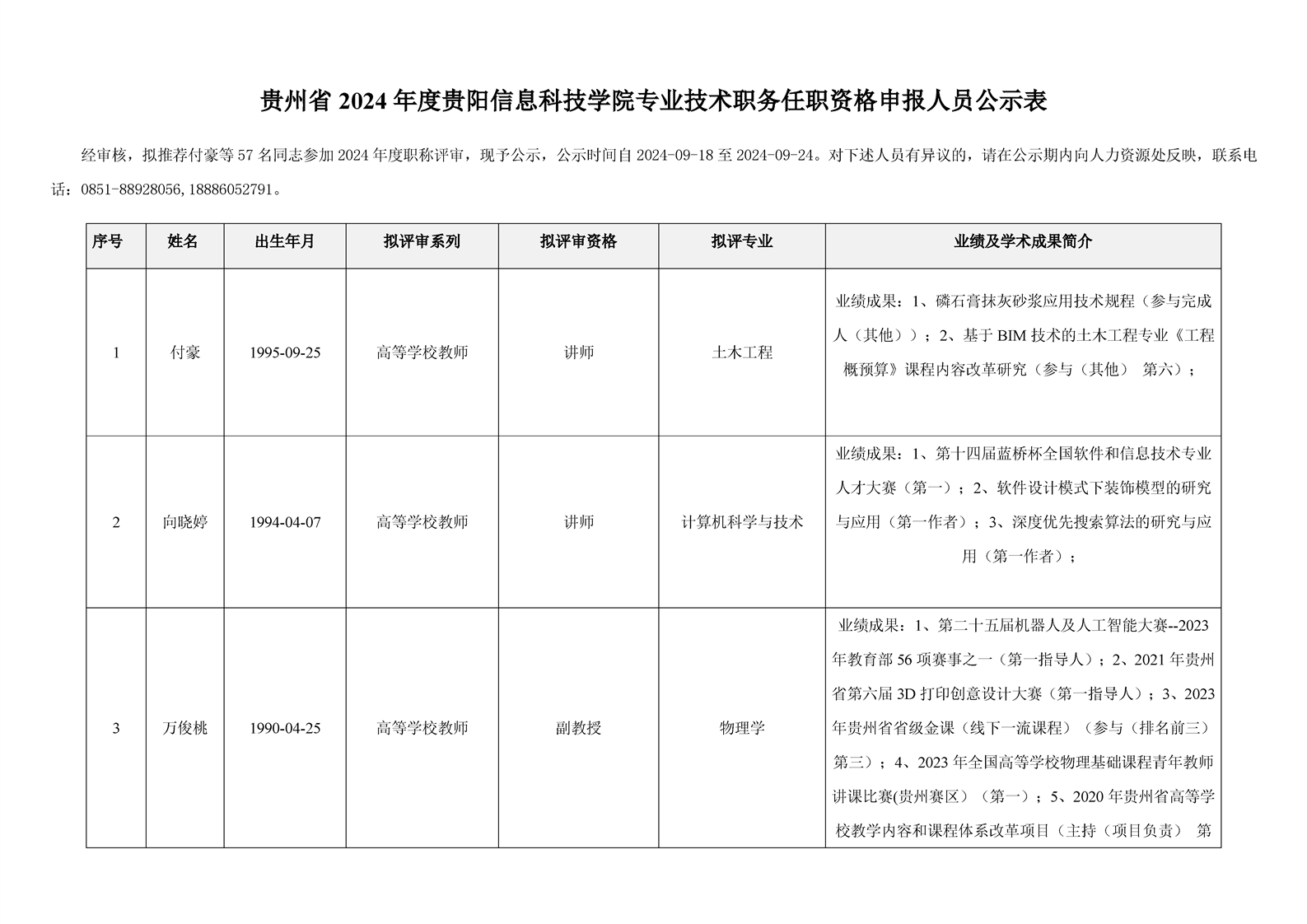 贵州省 2024 年度beat365在线唯一官网专业技术职务任职资格申报人员公示表(高教系列)