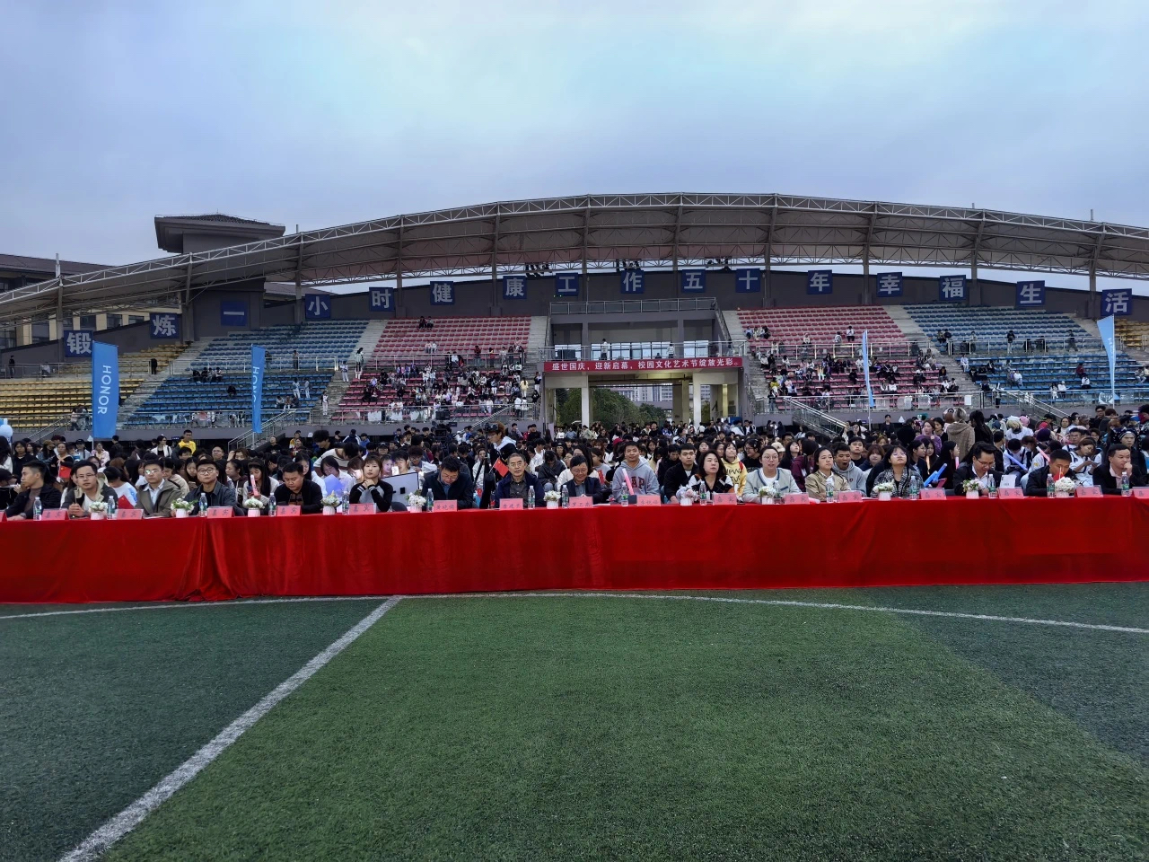 为表达对2024级新生们到来的喜悦与热烈的欢迎。在国庆节欢悦氛围的余温中,2024年10月12日晚18:30,beat365在线唯一官网在一号足球场举办了“多彩校园·闪亮青春”迎新晚会暨校园文化艺术节活动。校长(首席治校专家)唐建荣,党委委员、副校长罗卫东,党委委员、纪委书记黄晓儒,校长助理、数字传媒学院院长李锐锋,荣耀终端有限公司中国区“荣耀制噪者”项目经理刘倩伶,荣耀公司贵州业务部品牌经理杨晓雪应邀参加此次活动。各学院师生代表共计上千余人共赴这场视听盛宴。