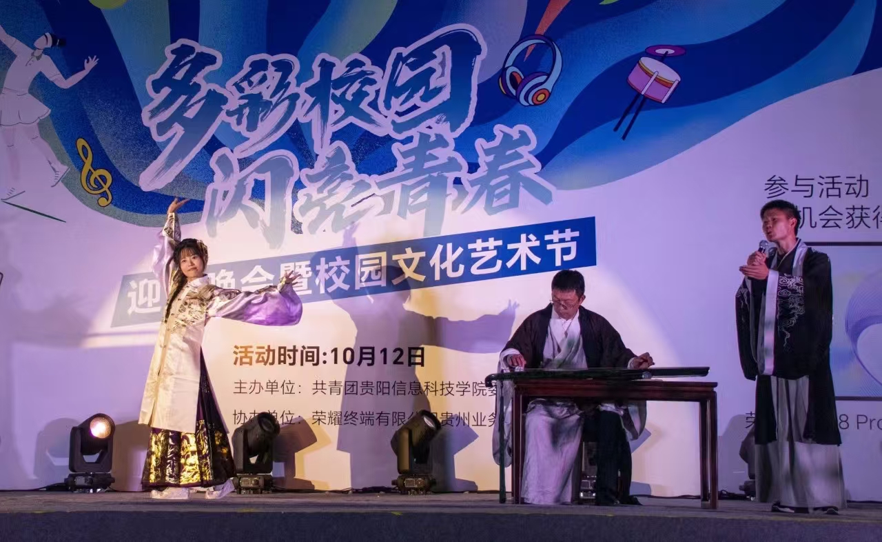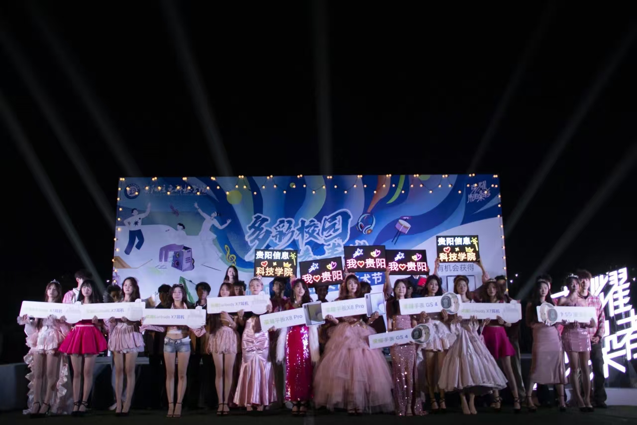 本次迎新晚会暨校园文化艺术节的圆满结束,是唐建荣校长和黄晓儒书记亲自为师生们带来的精彩表演,是各院和社团表演者们刻苦训练的无数课余间隙,是荣耀终端贵州业务部的慷慨赞助,是穿着各色工作服的工作人员们的忙前忙后和所有本次活动的领导、老师和工作人员们共同辛苦浇灌的结果。在多彩的贵科院里,贵科学子们绽放着属于他们的青春色彩。未来更加广阔的舞台等待着他们的精彩演绎!