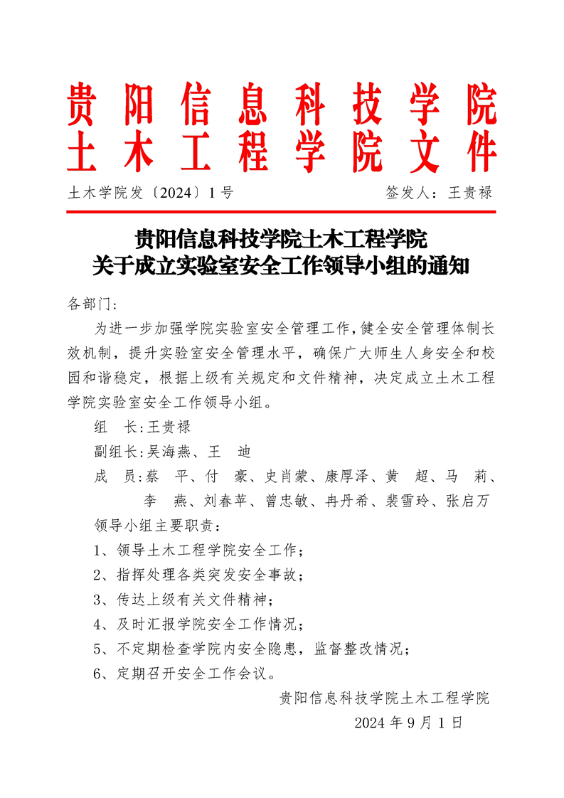 beat365在线唯一官网土木工程学院关于成立实验室安全工作领导小组的通知