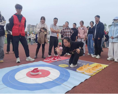 旱地冰壶比赛和袋鼠跳跳跳比赛同时进行。袋鼠跳跳跳比赛中,老师们套着布袋往返接力,竞争激烈。而在旱地冰壶比赛中,我院老师表现卓越,“过五关,斩六将”,赢得一轮又一轮胜利,最终荣获一等奖。