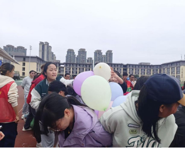 气球运送大作战比赛充满童趣,现场尖叫声此起彼伏。比赛中,老师们紧密配合,充分展现团队协作能力。