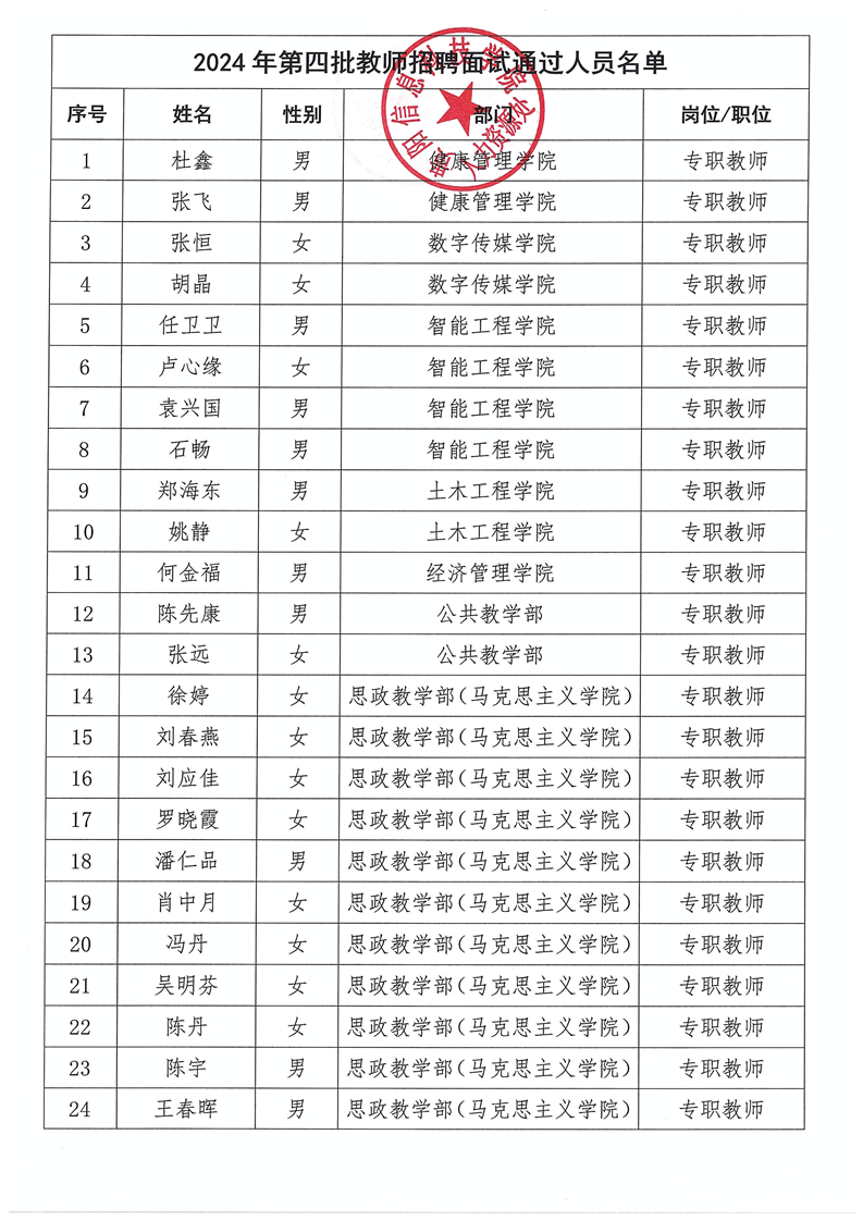 关于beat365在线唯一官网2024年第四批教师招聘面试通过人员名单公示