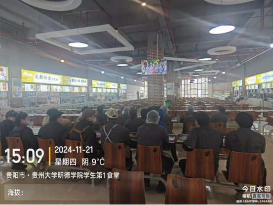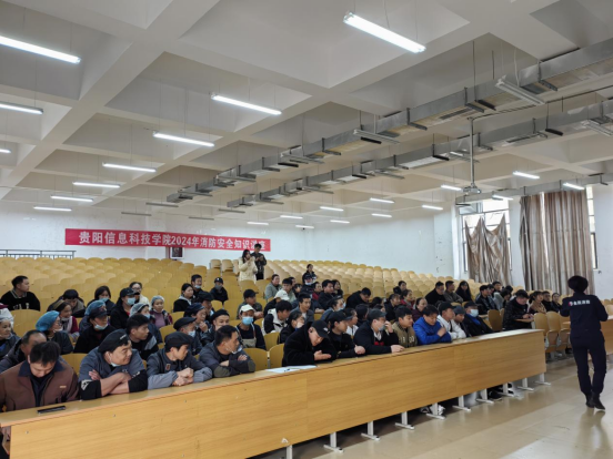 邀请贵州全民消防知识宣传中心宣讲团成员到校为安保、后勤、食堂、商户及各学院辅导员开展消防安全知识专题讲座,通过消防法律法规、消防专业知识并结合典型惨痛案例,讲解了火灾的危害与预防火灾措施及应急逃生技巧等内容。