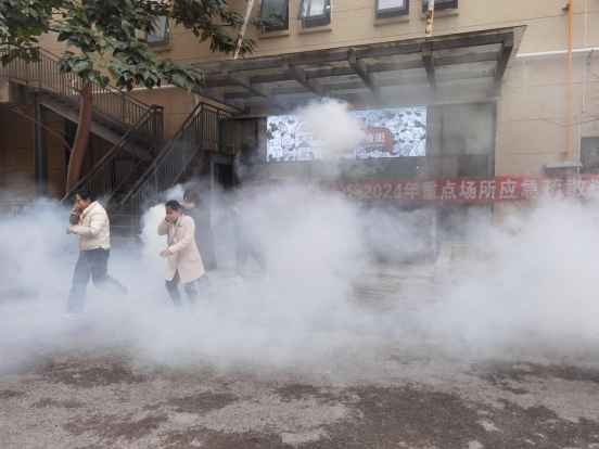 随后,组织食堂员工及商户开展了应急疏散逃生演练,按照预定的疏散路线,食堂员工在疏散引导员的组织下,弯腰低姿,迅速、有序地从楼梯向楼外疏散。疏散过程中,员工们保持冷静,相互提醒,避免了出现拥挤、踩踏等事故。逃生演练结束后,开展了消防器材学习使用操作并进行灭火演练,有效提升了全体人员的消防安全知识及处置突发事件的能力。