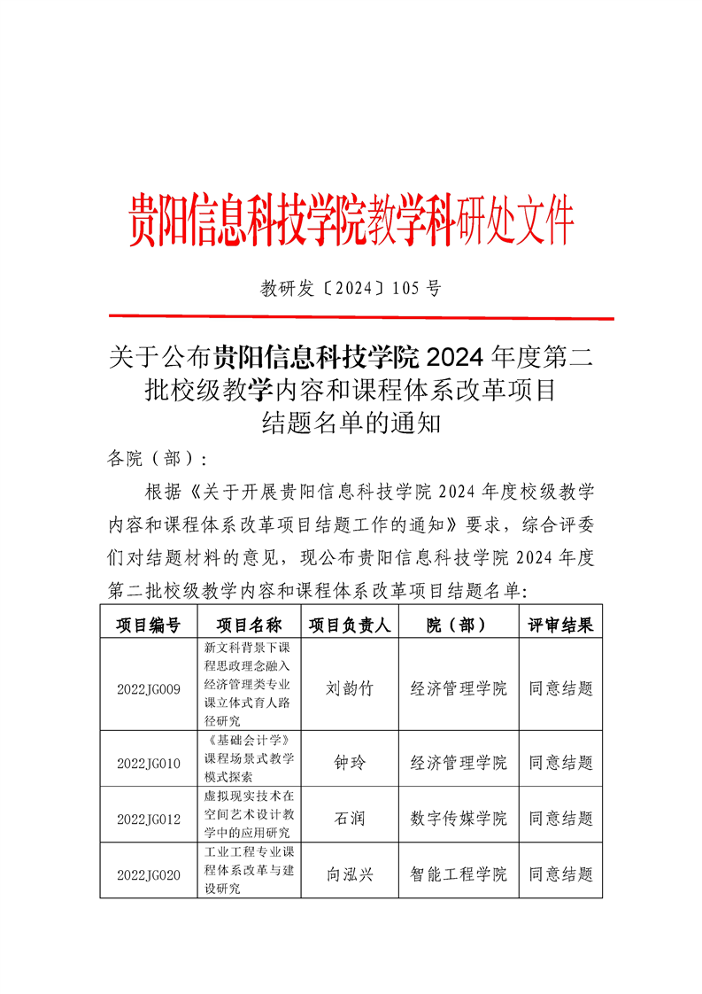 关于公布beat365在线唯一官网2024年度第二批校级教学内容和课程体系改革项目结题名单的通知