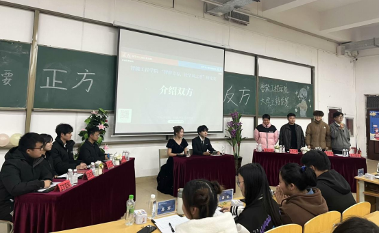 比赛邀请到智能工程学院党总支书记卓莉老师、团总支书记马瑞老师、张雪老师、向丹老师以及辩论社的四位同学担任评委,以专业视角提供指导与点评。辩题围绕学习过程与结果的权衡、学风建设责任归属以及大学生上课背包习惯等话题展开,引发了同学们的广泛关注与深度思考。