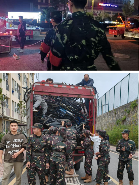 每日,无论晨曦微露还是夜幕降临,利用课余时间护卫 队队员都会按照既定的巡逻路线,穿梭于校园的各个角落。从教学楼到图书馆,从操场到食堂,他们的足迹遍布校园的每一寸土地。在巡逻过程中,队员们仔细检查消防设施是否完好可用、车辆是否违规停放和超速行驶,校园公共设施是否安全完好、门窗是否关闭妥当、有无可疑人员徘徊等情况,协助保卫处治理校门口流动摊贩违规占道经营现象,对发现的安全隐患及时记录并上报相关部门,力求将各类安全风险消灭在萌芽状态。