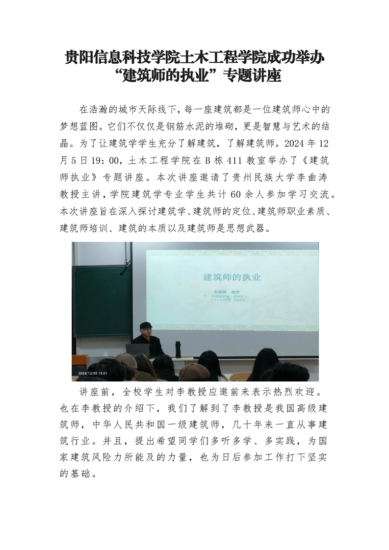 beat365在线唯一官网土木工程学院成功举办 “建筑师的执业”专题讲座