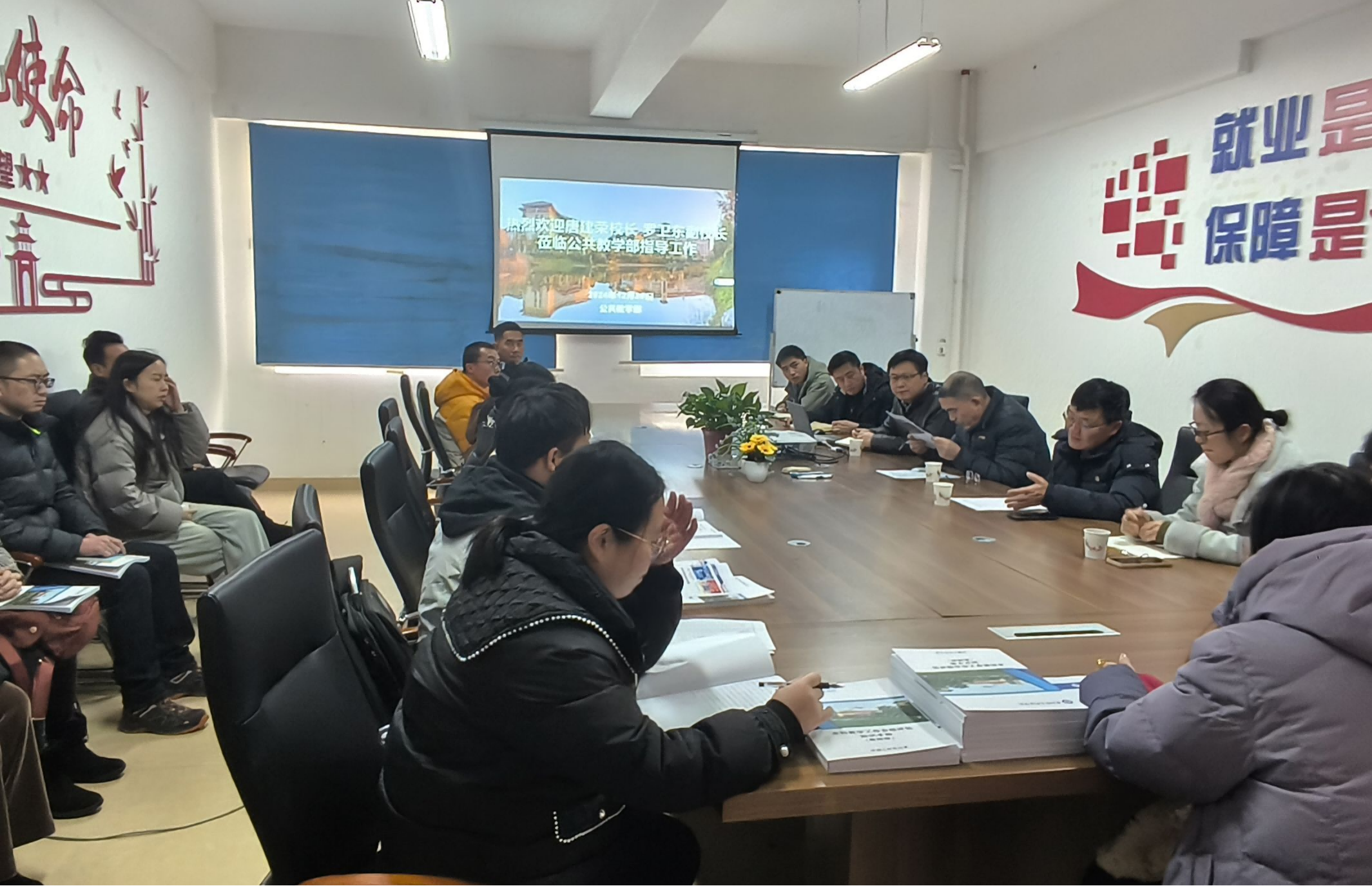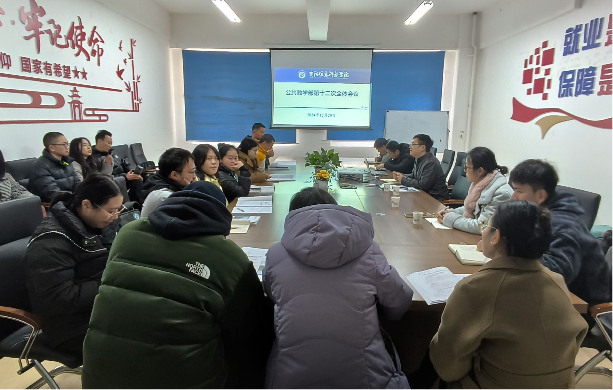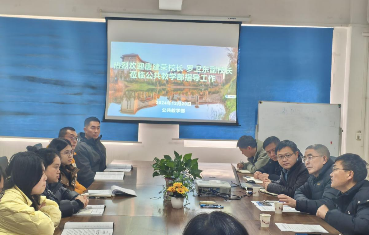 2024年12月20日,公共教学部第十二次部门例会在A栋205召开,江林焱老师主持会议,本次会议邀请了beat365唐建荣校长、罗卫东副校长对我部门工作进行指导,与会人员还包括数学教研室、外语教研室、基础体育教研室、数字技术教研室、物理教研室的全体教师。