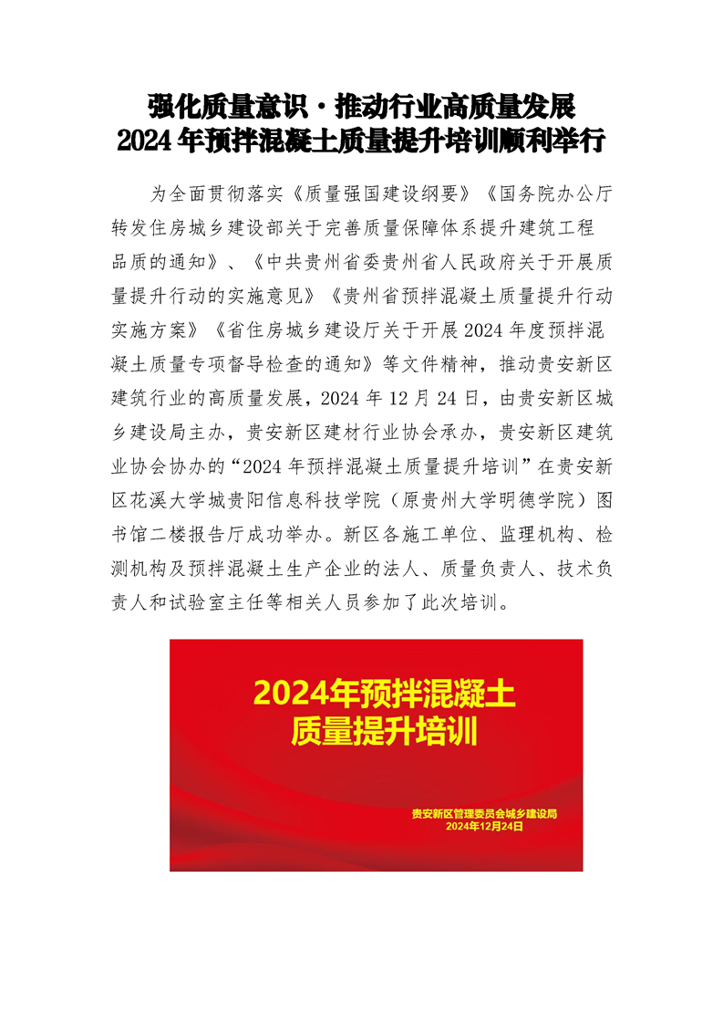 强化质量意识·推动行业高质量发展 2024 年预拌混凝土质量提升培训顺利举行