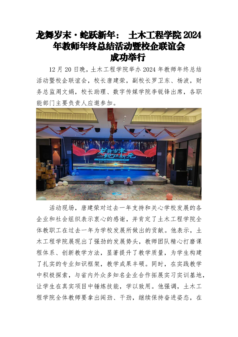 龙舞岁末·蛇跃新年: 土木工程学院2024年教师年终总结活动暨校企联谊会 成功举行