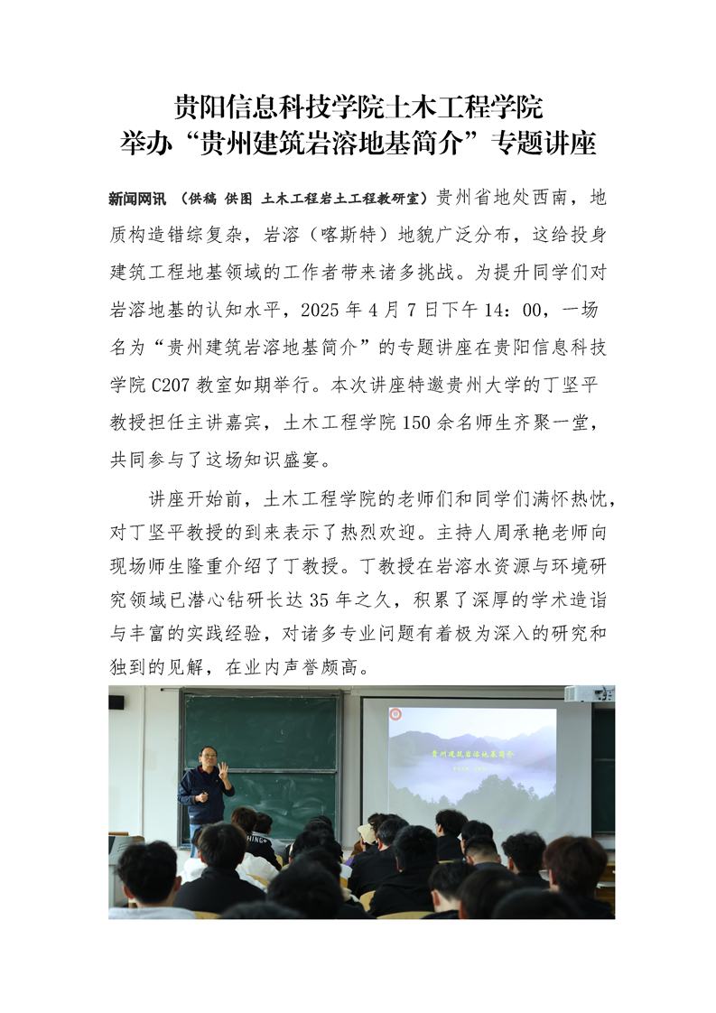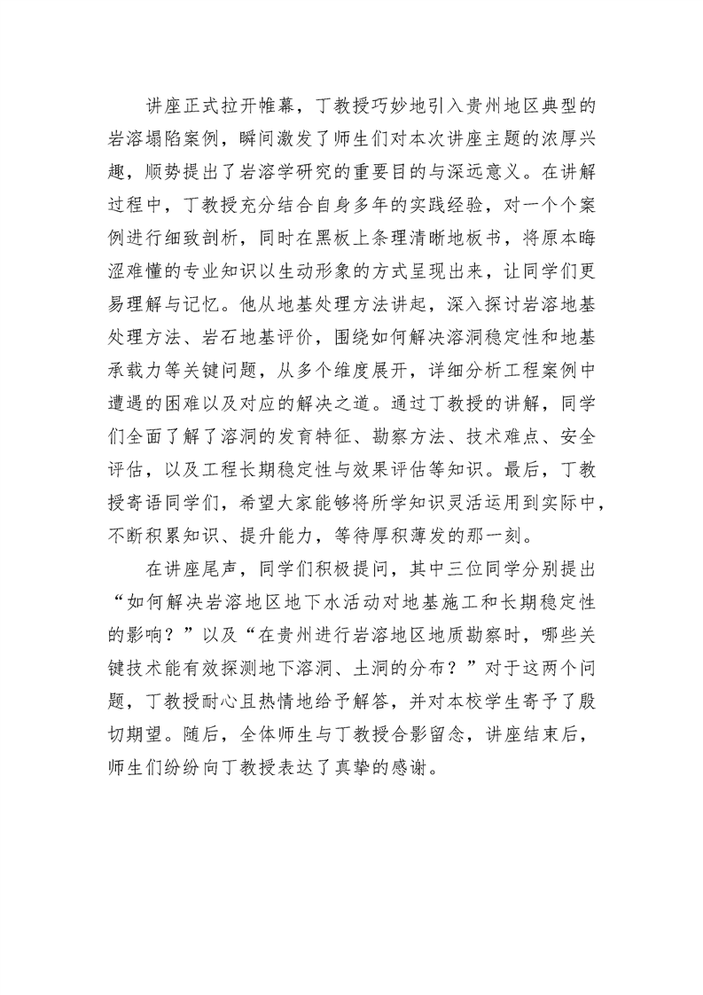 beat365在线唯一官网土木工程学院 举办“贵州建筑岩溶地基简介”专题讲座