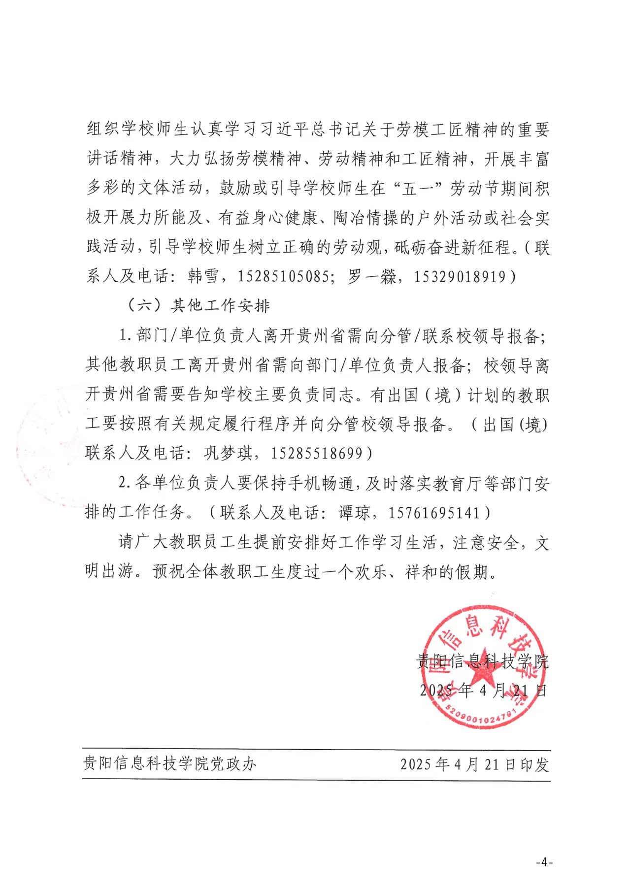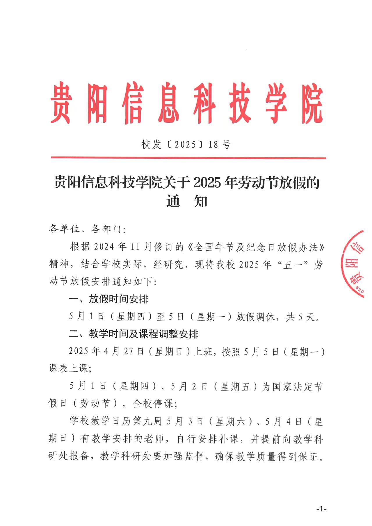 关于2025年“五一”劳动节放假的通知