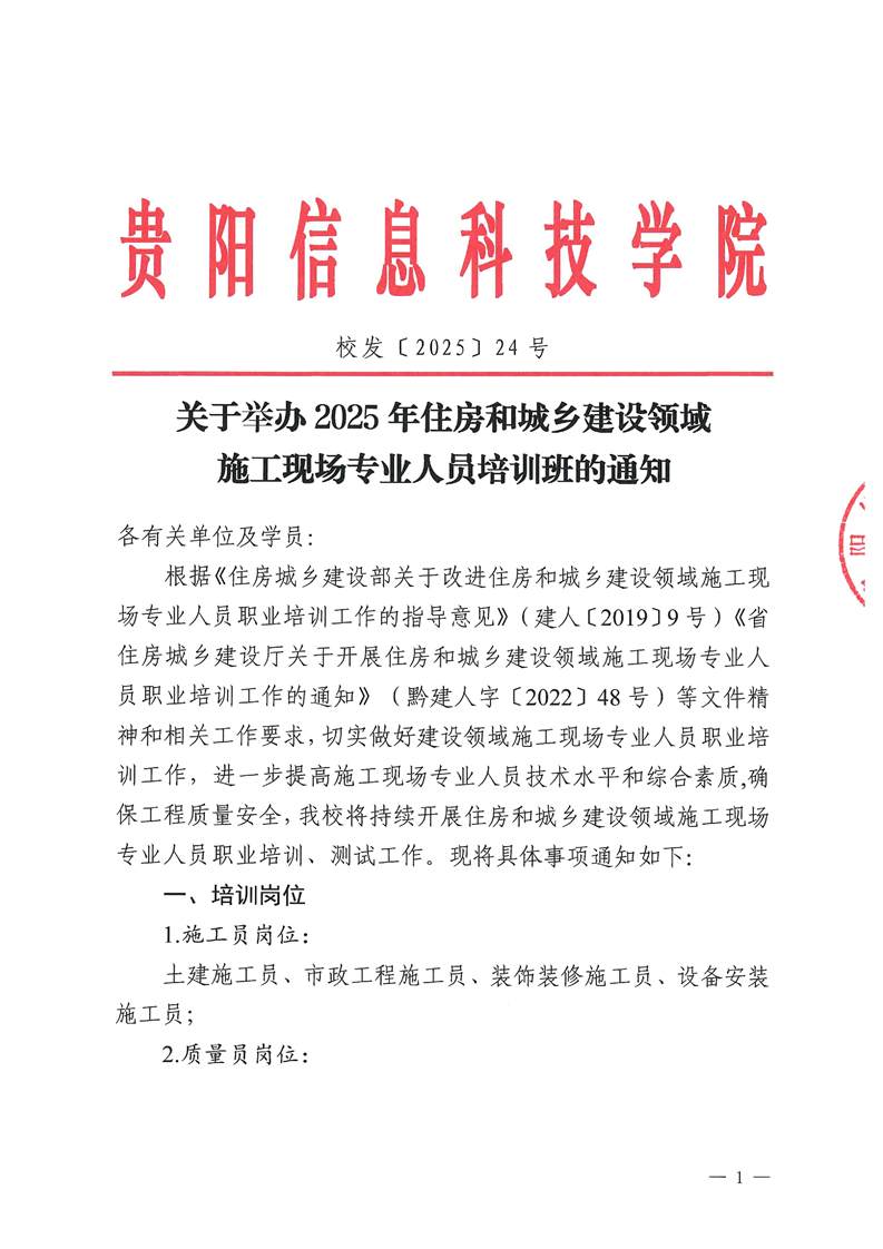 关于举办 2025 年住房和城乡建设领域施工现场专业人员培训班的通知