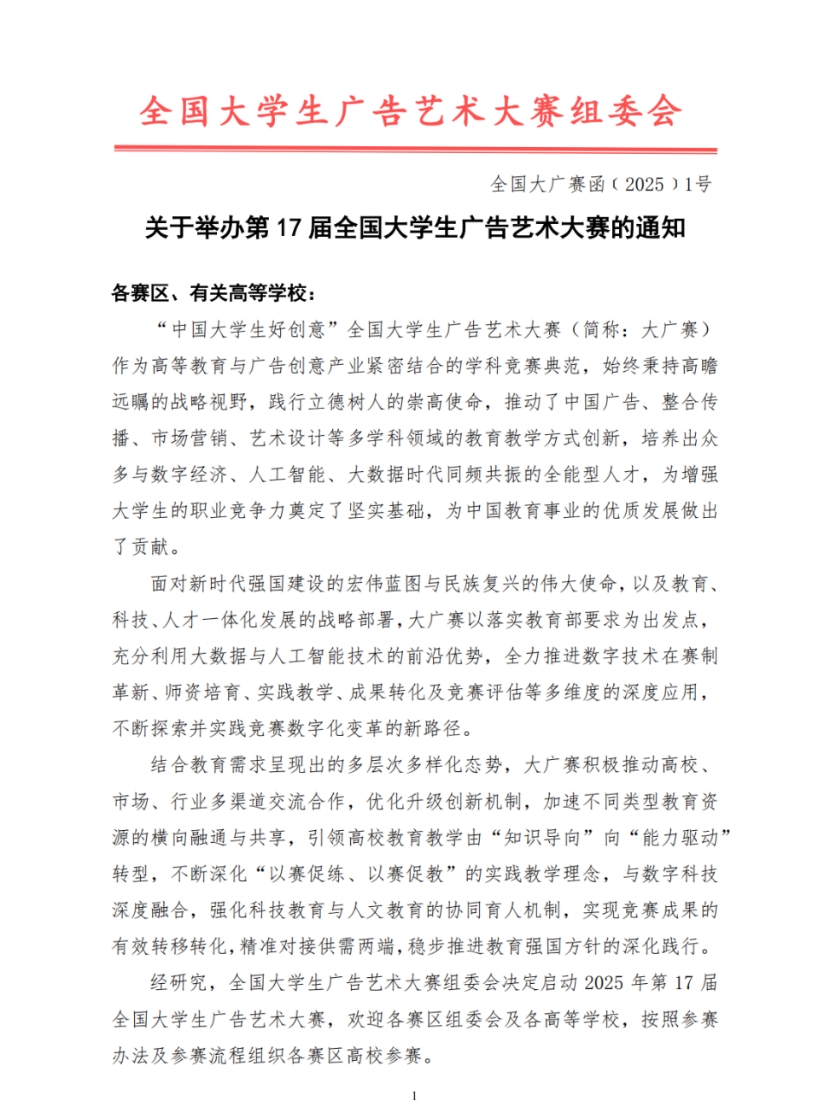 大广赛设置全国统一命题的公益广告和以企业背景资料命题的商业广告两种形式。