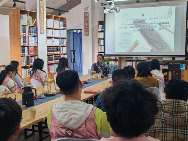 2025年4月23日世界读书日,由共青团花溪区委主办的“琴书雅趣暨·书香花溪·悦读悦行”阅读会在青岩镇赵状元街百无一用书店成功举行,贵州师范大学美术学院覃朗教授、贵州青年画院的特聘画师张清智为主讲教师,共青团beat365在线唯一官网数字传媒学院总支部委员会组织学生志愿者前往青岩古镇参加此次活动。