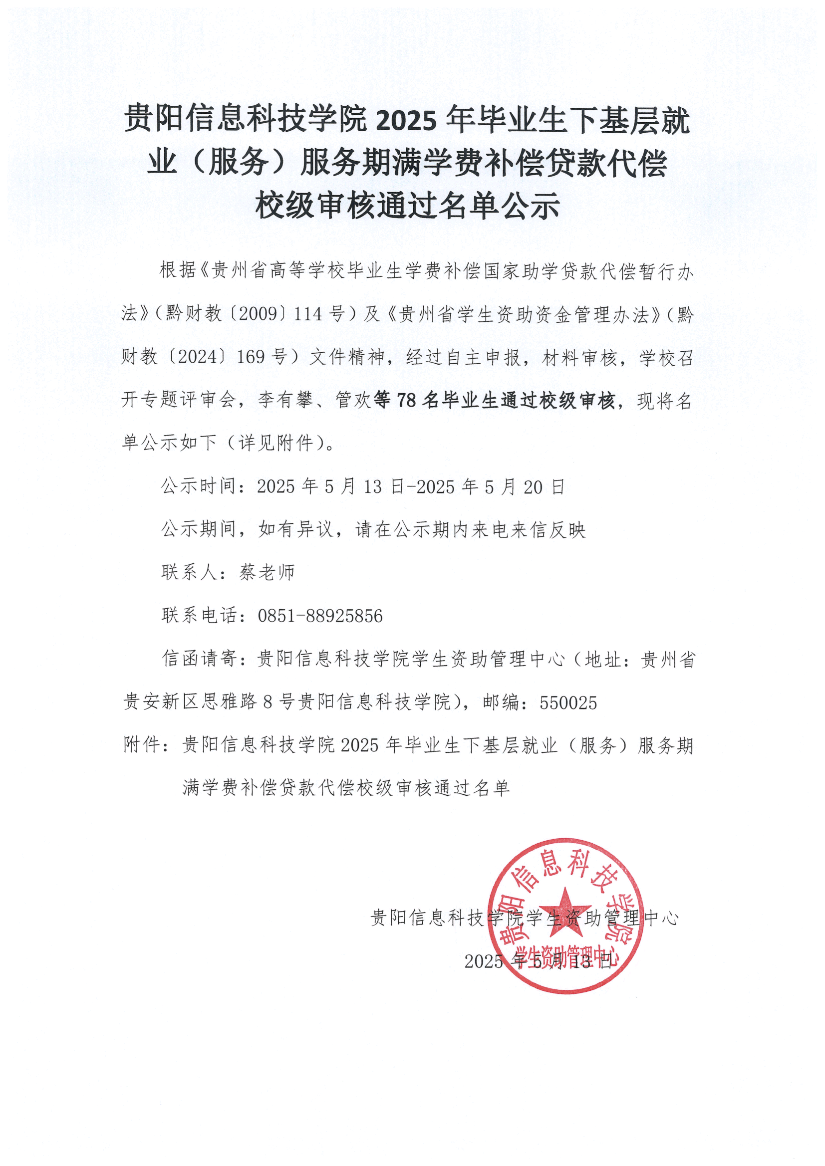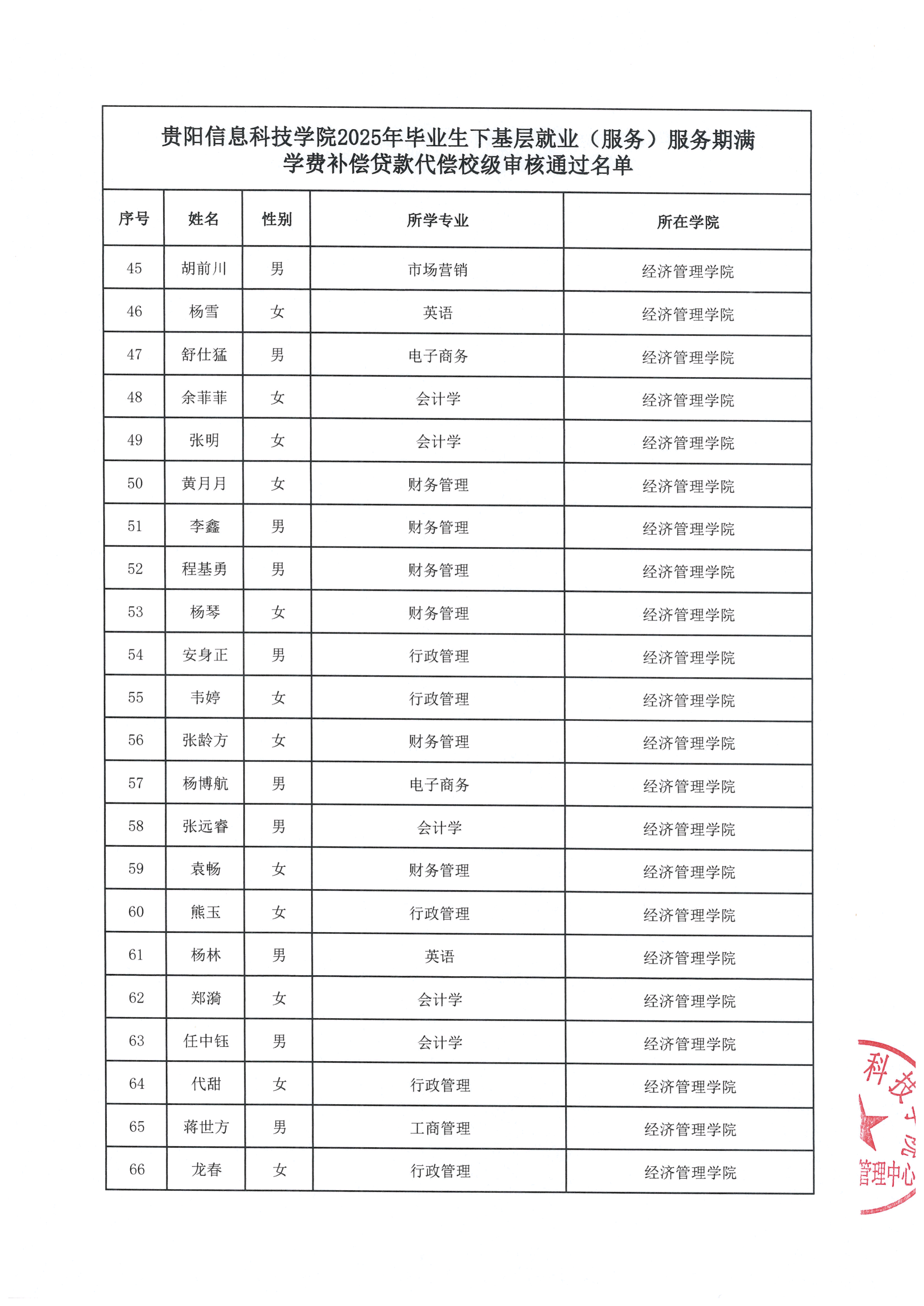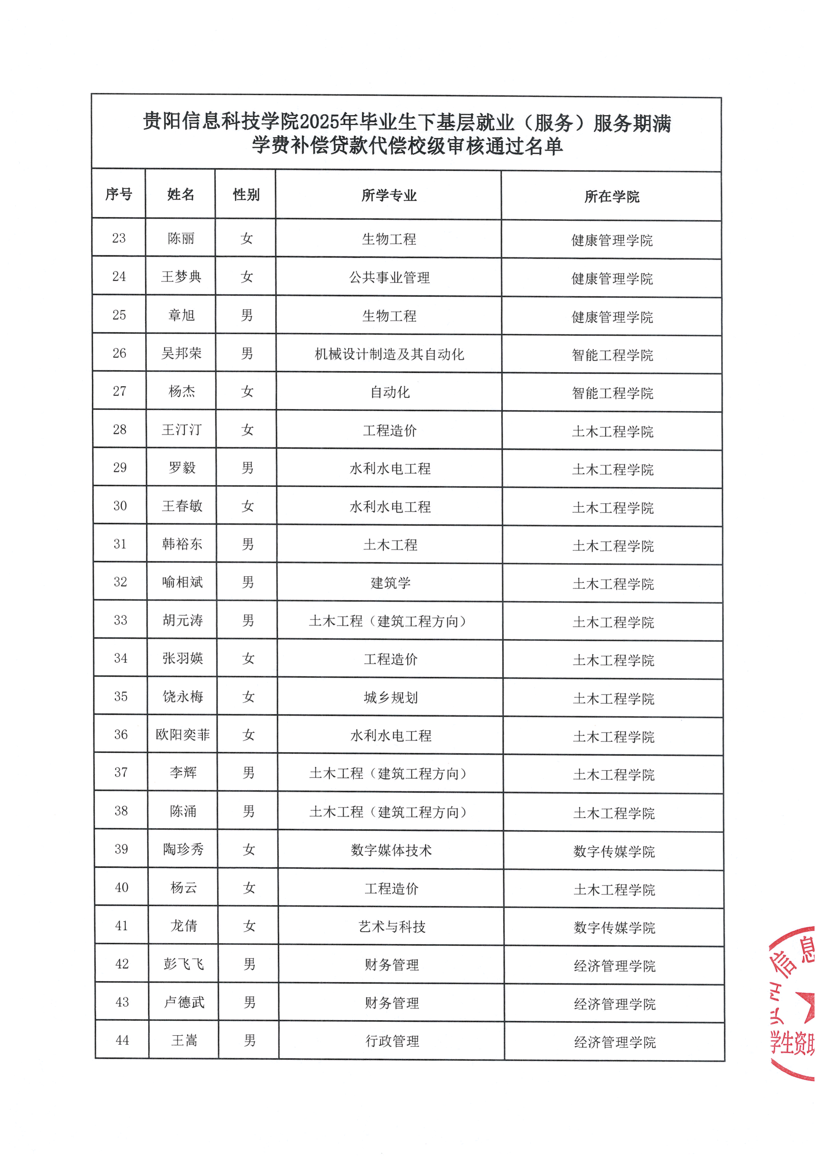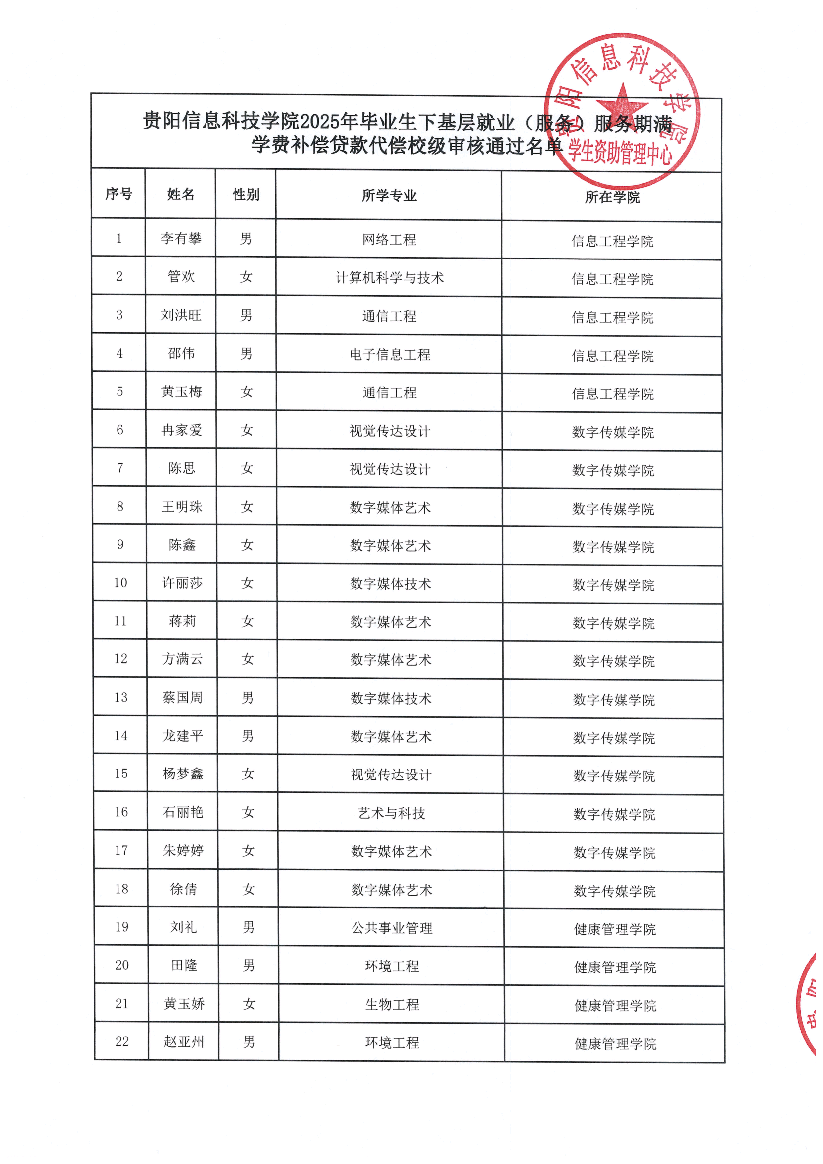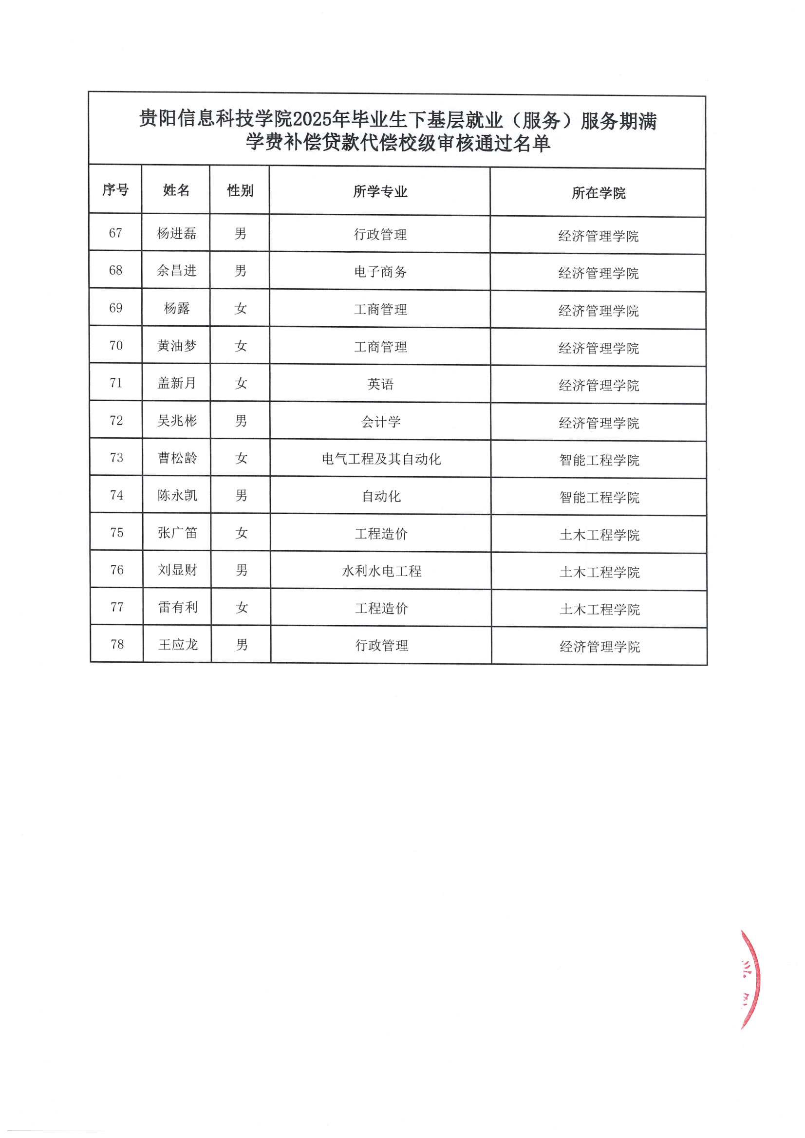 beat365在线唯一官网2025年毕业生下基层就业(服务)服务期满学费补偿贷款代偿校级审核通过名单公示