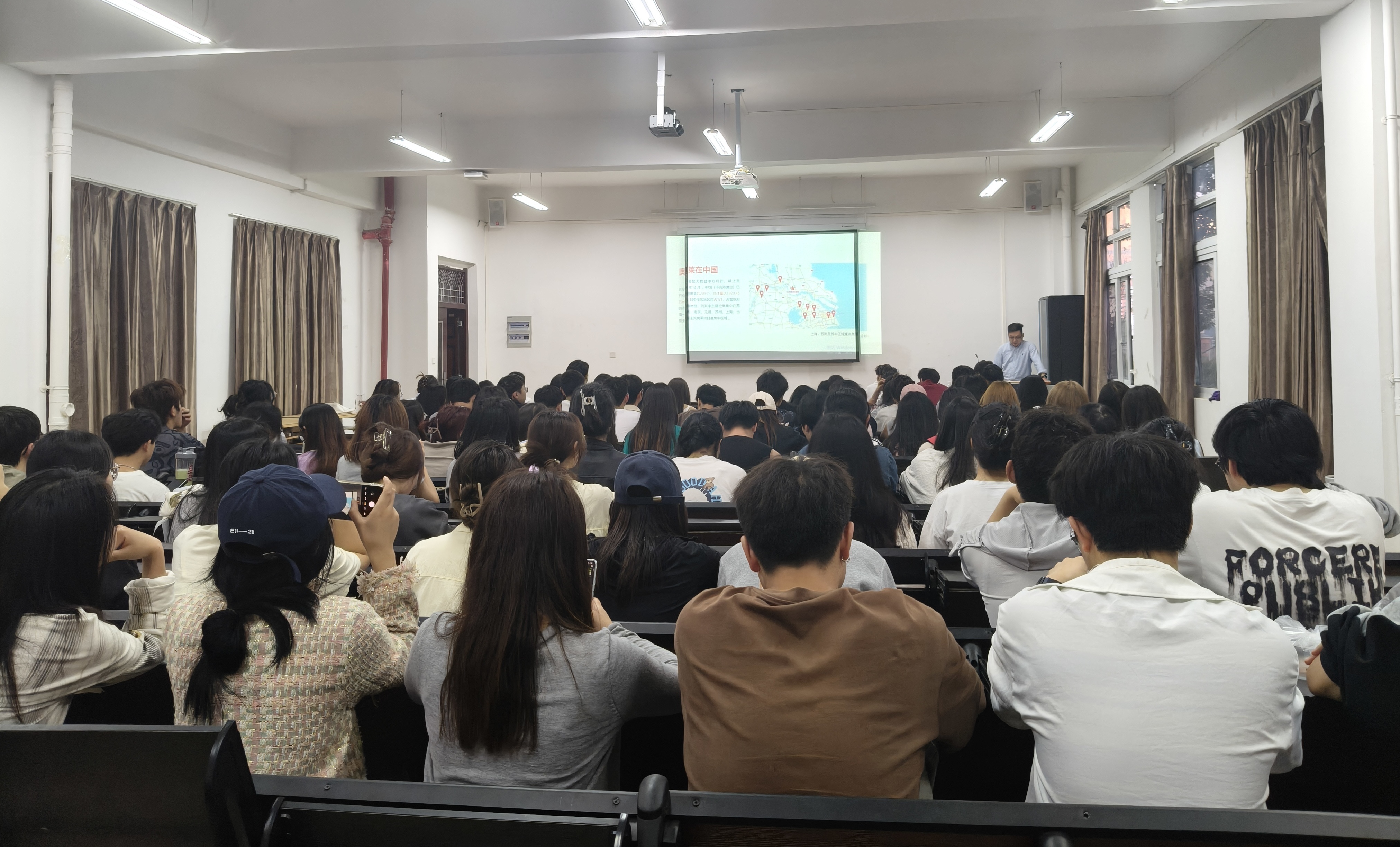 活动伊始,学院荣幸地邀请到了欣光慧、奥特莱斯、京东物流和志行合力等8家知名企业代表。他们带着满满的诚意与干货,齐聚一堂,为同学们带来一场实习招聘的盛宴。企业代表们登场后,向同学们挥手示意,并开启了精彩的宣讲。他们借助精心制作的PPT,从教育领域的留学项目、体育基础设施建设,到咨询领域的企业战略咨询、组织架构咨询等业务,都一一展开阐述。在介绍招聘需求时,他们针对不同岗位,进行了细致说明。还展示了场地实拍照片,无论是充满活力的办公区域,还是专业的项目场地,都让同学们对未来的工作环境有了直观感受。在应聘流程环节,他们耐心讲解了从线上简历投递的邮箱地址、格式要求,到后续面试的具体安排和考察重点。
