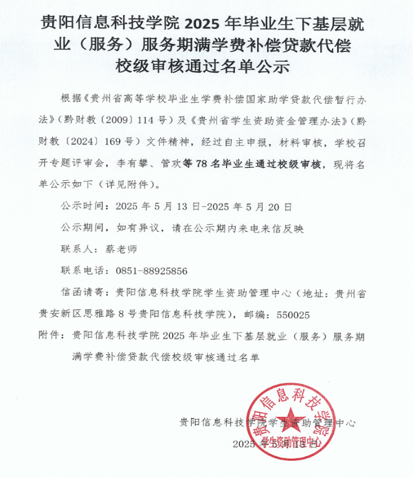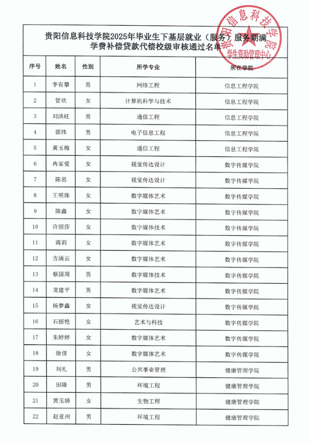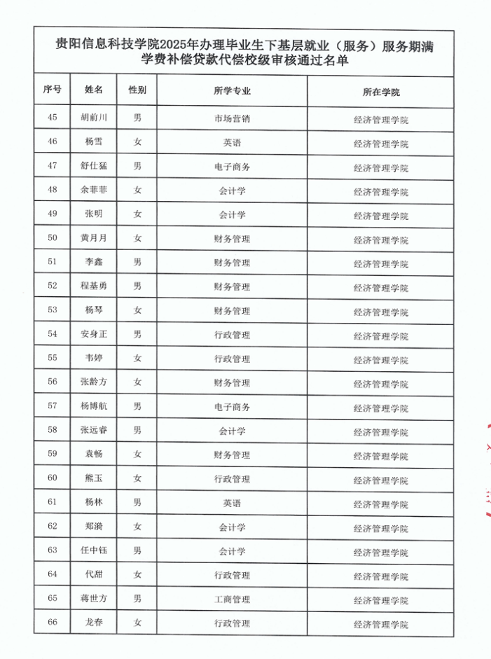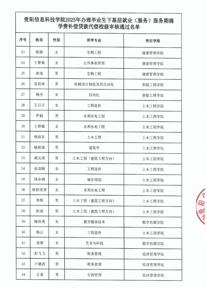 beat365在线唯一官网2025年毕业生下基层就业(服务)服务期满学费补偿贷款代偿 校级审核通过名单公示