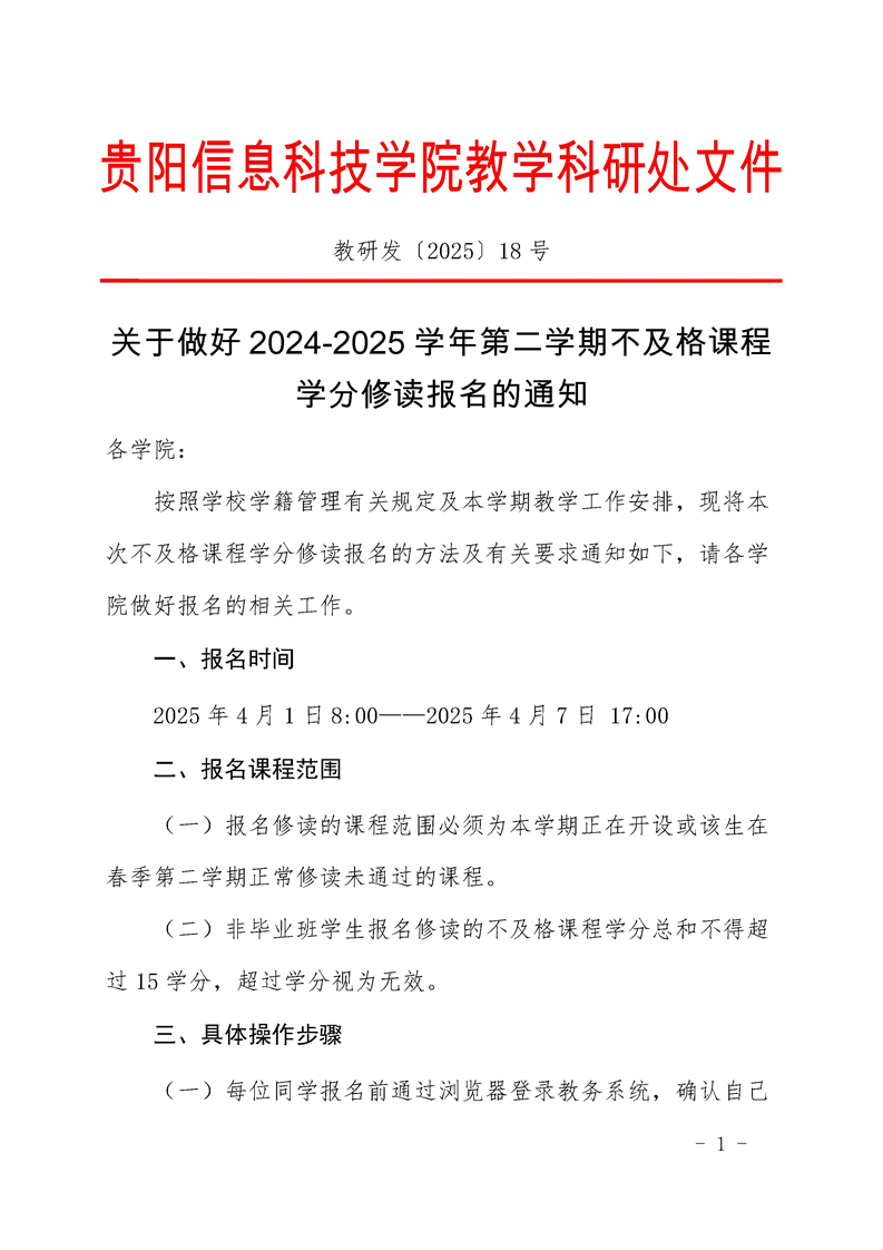 关于做好 2024-2025 学年第二学期不及格课程 学分修读报名的通知