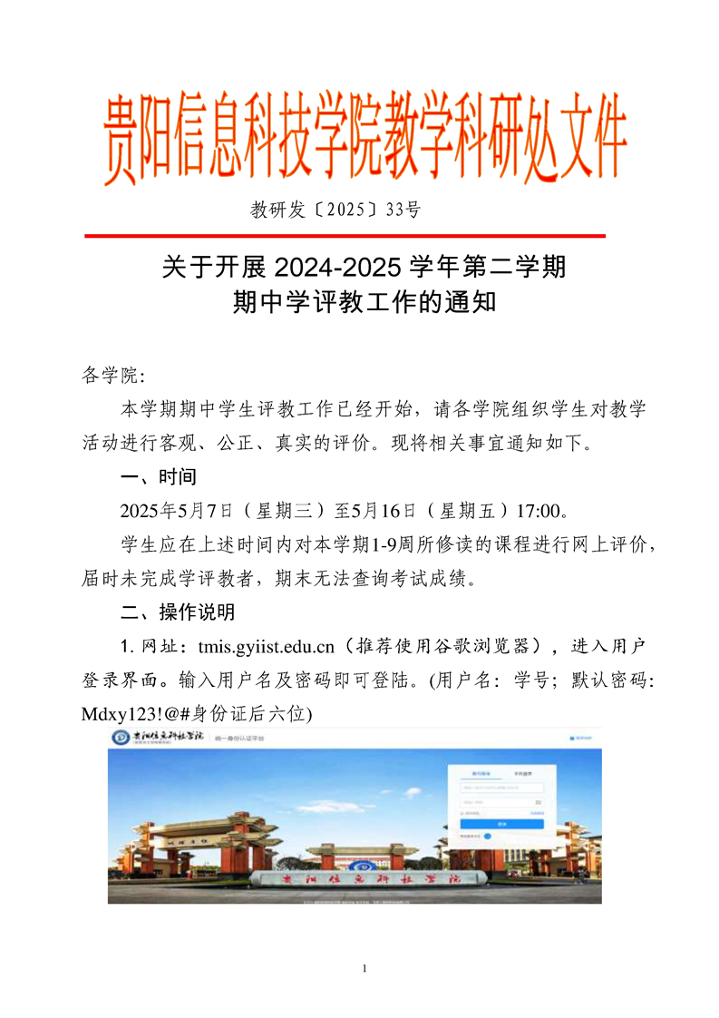 关于开展2024-2025学年第二学期 期中学评教工作的通知