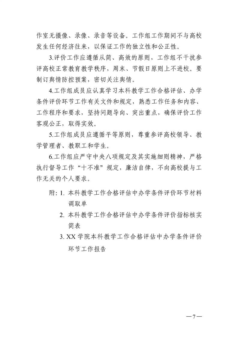 附件3:普通高等学校本科教学工作合格评估中办学条件评价环节工作规程