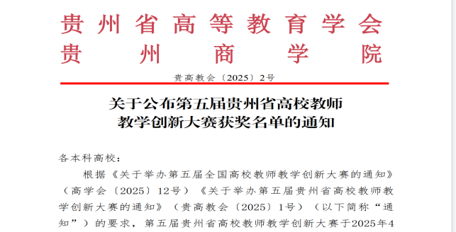 2025年5月29日,贵州省高等教育学会正式揭晓第五届贵州省高校教师教学创新大赛获奖名单。在这场汇聚全省高校教学精英的赛事中,beat365数字传媒学院刘琦教师团队、蒋燚教师团队分别荣获新文科赛道、课程思政赛道二等奖。