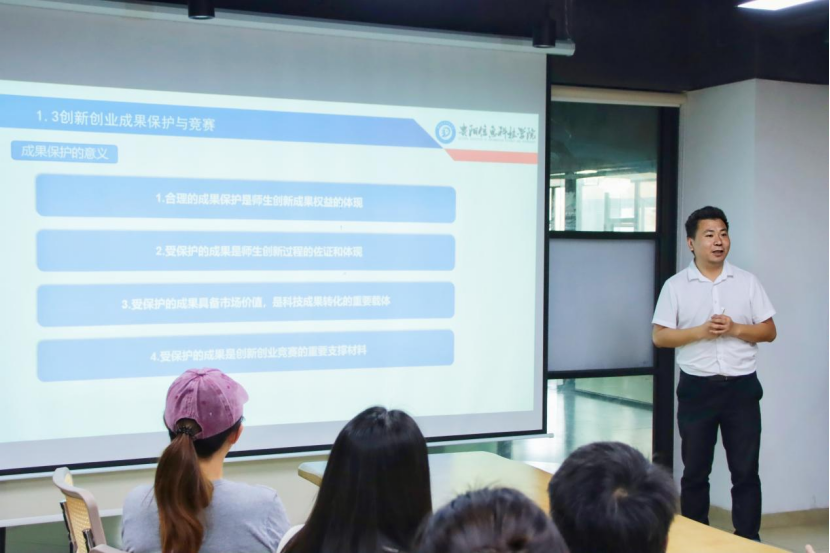 双创中心知识产权专员杨宏聚焦“课程创新与知识产权保护”,强调创新具有首创性、时效性等五大特性,课程可以通过萌芽期、调研期、实践期转化为推广期竞赛项目。他以实际案例说明成果保护是权益佐证与竞赛支撑,可以通过论文、专利等方式实现,助力教师授课和对学生知识产权的保护引导。