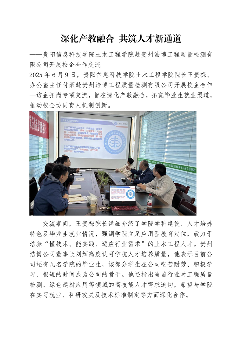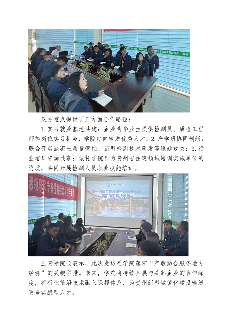 深化产教融合 共筑人才新通道——beat365在线唯一官网土木工程学院赴贵州浩博工程质量检测有限公司开展校企合作交流