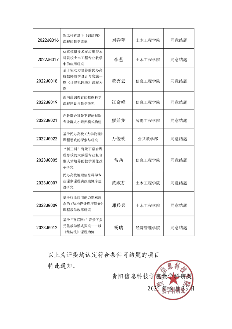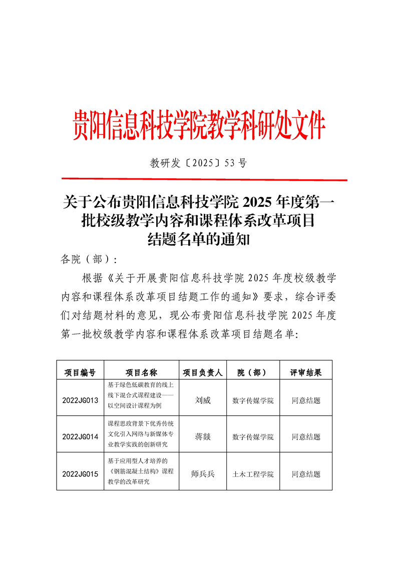 关于公布beat365在线唯一官网2025年度校级教学内容和课程体系改革项目结题名单的通知