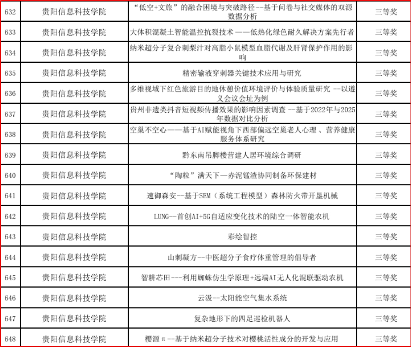 (三等奖仅截取部分项目名单)