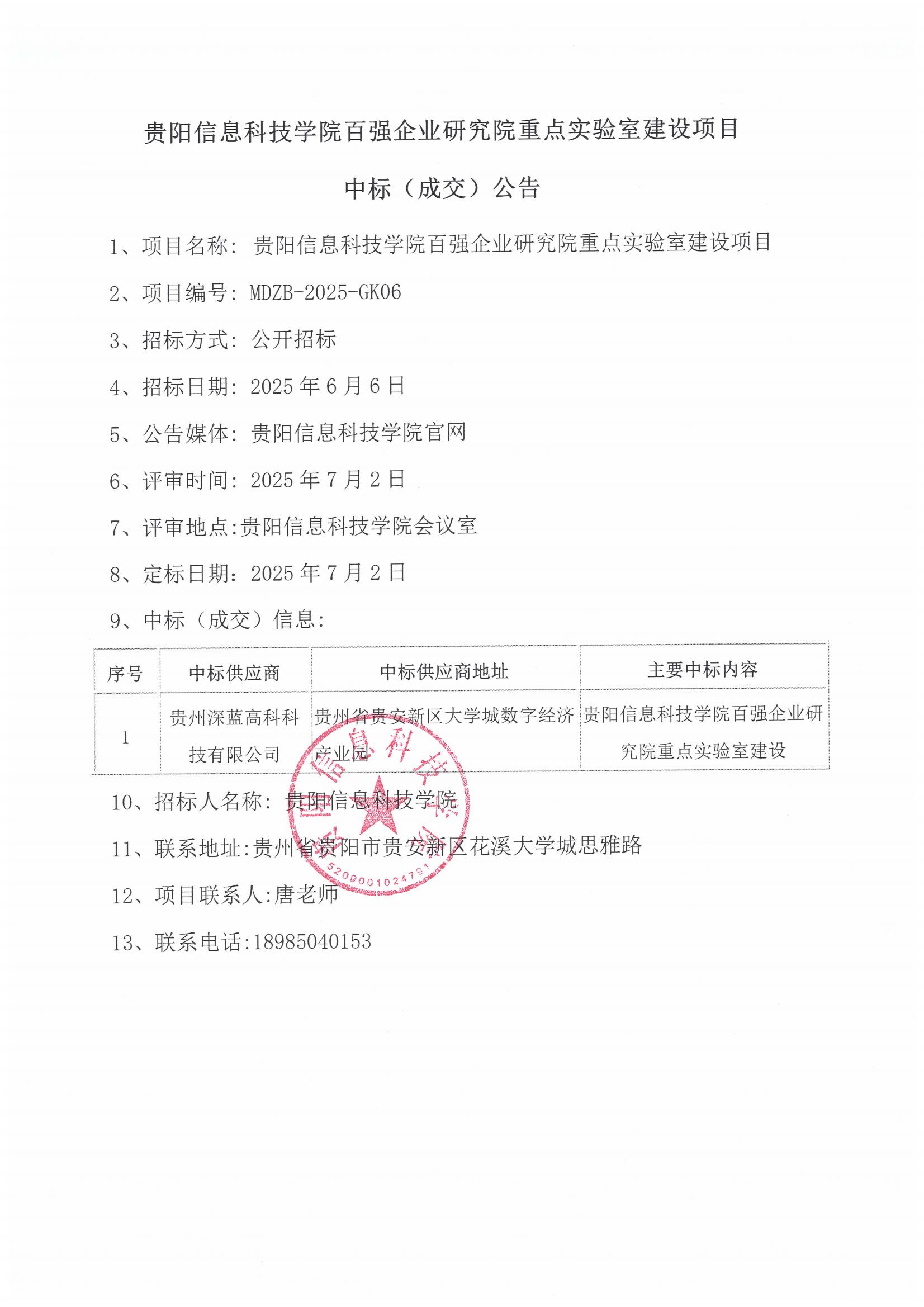 beat365在线唯一官网百强企业研究院重点实验室建设项目中标(成交)公告