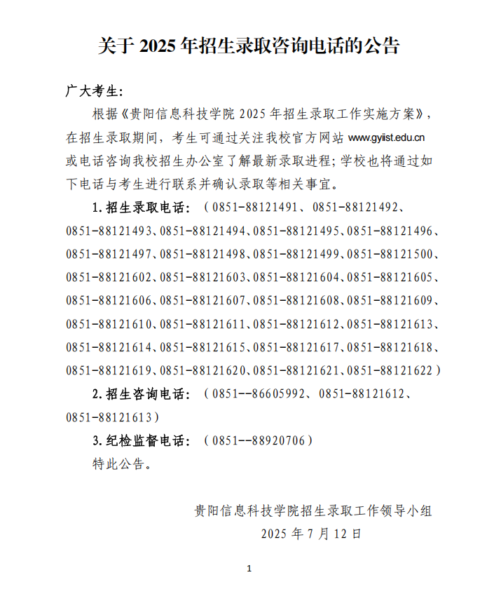 beat365在线唯一官网关于2025年招生录取咨询电话的公告