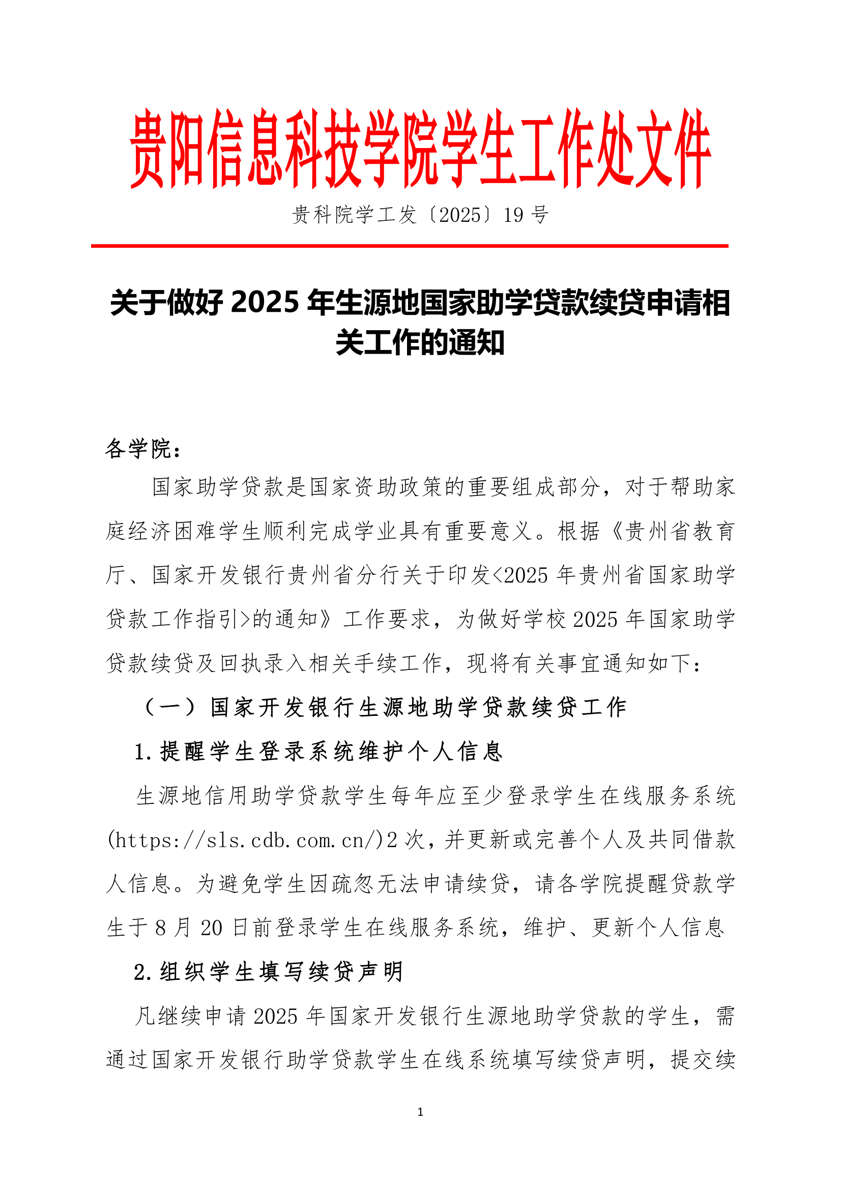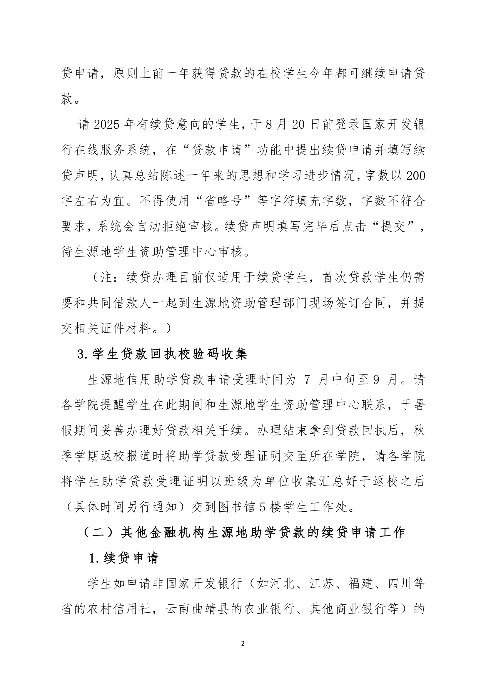关于做好2025年生源地国家助学贷款续贷申请相关工作的通知