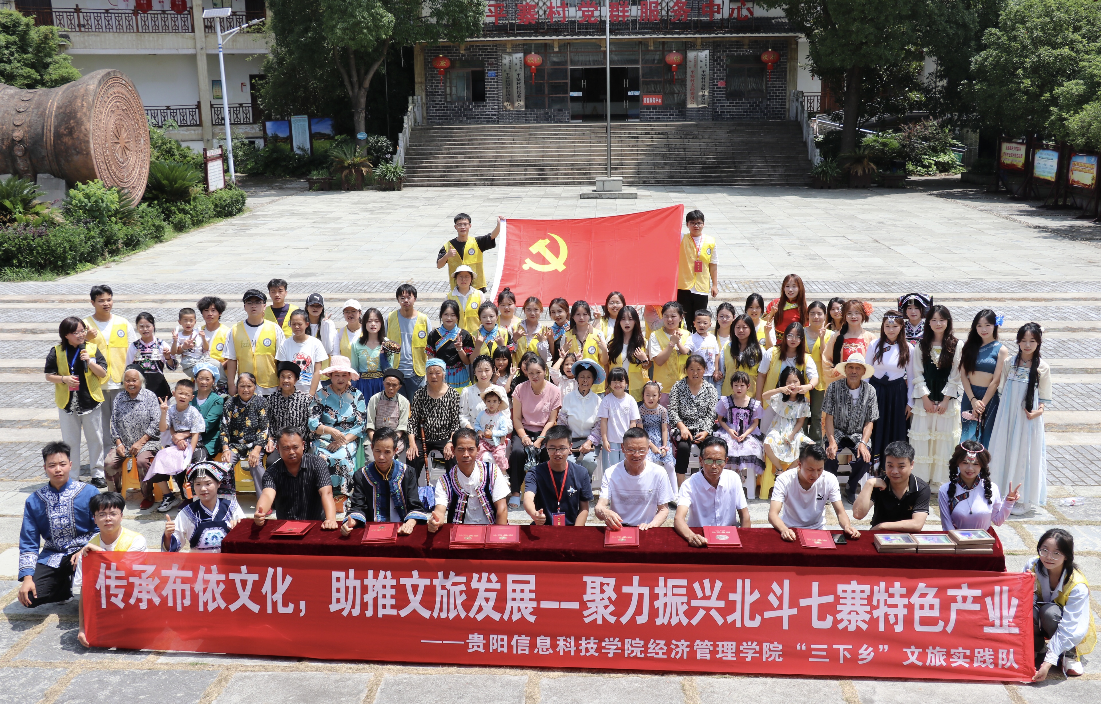 7月12日,平寨村委会广场“北斗七寨文化旅游发展协会”揭牌暨“文旅代言人”聘书颁发仪式在此举行。村民、企业家、游客热情高涨。贵阳信息科技学院学子与村民联袂献上布依歌舞,欢庆协会诞生。仪式高潮,全场齐声高唱《我在贵州等你》,以真挚歌声向四海宾朋发出避暑之约。