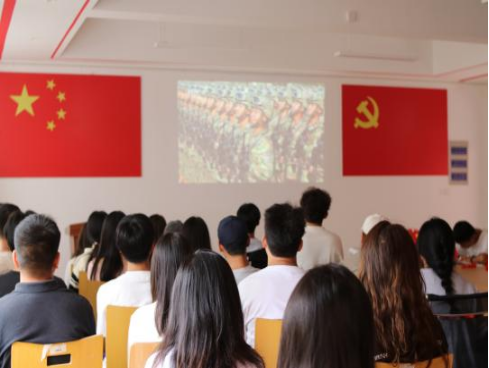 活动在高亢的国歌声中拉开帷幕。当直播画面呈现天安门广场升旗仪式时,现场师生全体起立,齐声高唱国歌。嘹亮的歌声在党建室内久久回荡,饱含着对革命先烈的崇高敬意。