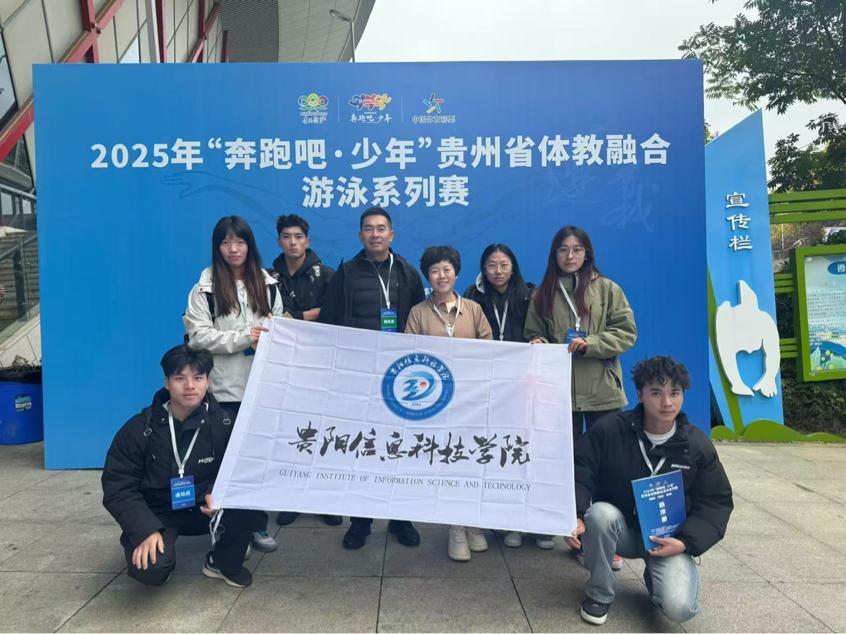 10月24日,2025年“奔跑吧,少年”贵州省体教融合系列赛游泳比赛开赛。这场汇聚全省游泳新秀的激烈角逐中,由公共教学部唐丽华老师担任领队,包健、李建两位老师联合指导的6人小队—孙嘉璐、刘粒、杨愿、王胤喆、罗光记、韦团上,凭借扎实的技术功底与顽强的拼搏精神,在碧波池中镌刻下属于青春的热血印记。