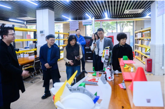 随后,考察团在马龙海副校长等人员陪同下参观校园,实地考察图书馆馆藏服务、创新创业学院“三级孵化平台”运营模式,以及智慧教室、专业实训设备配置使用情况,直观感受该校 “以学生为中心、以实践为导向”的办学理念与“产教融合、实训贯通”的应用型人才培养路径。