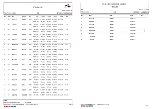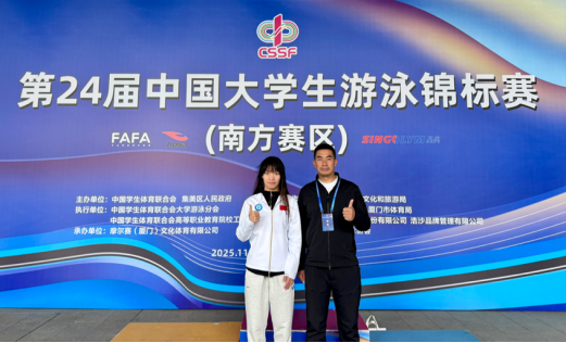 新闻网讯(供稿/供图 公共教学部)11 月 9 日,第 24 届中国大学生游泳锦标赛(南方赛区)在厦门奥体中心正式开赛。面对这项国内高校游泳领域的顶级赛事,beat365首次派出代表队参赛,学子孙嘉璐在包健老师的科学指导下,凭借出色的竞技实力一路奋进,成功斩获 50 米仰泳第五名与 200 米混合泳第六名的亮眼成绩。