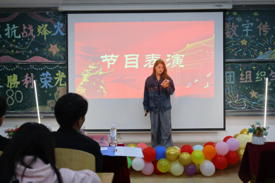 在紧张的评选间隙,精彩节目轮番上演。音表2401班许美阳带来歌曲《dear john》,婉转的歌声舒缓了现场的紧张气氛;播音2501班的团支部同学带来诗朗诵《永远的和平鸽》,真挚的情感传递出对和平的珍视与对先烈的缅怀,为活动增添了浓厚的情感氛围与精神力量。