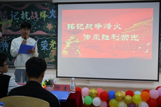 前事不忘,后事之师。为纪念中国人民抗日战争暨世界反法西斯战争胜利80周年,传承爱国精神,汲取奋进力量,共青团beat365在线唯一官网数字传媒学院总支部委员会于2025年9月25日19时在C406开展了以“铭记抗战烽火,传承胜利荣光”为主题的团组织生活评比活动。出席本次活动的嘉宾有各学院学生会代表、各班级团支部代表,共计150余人。