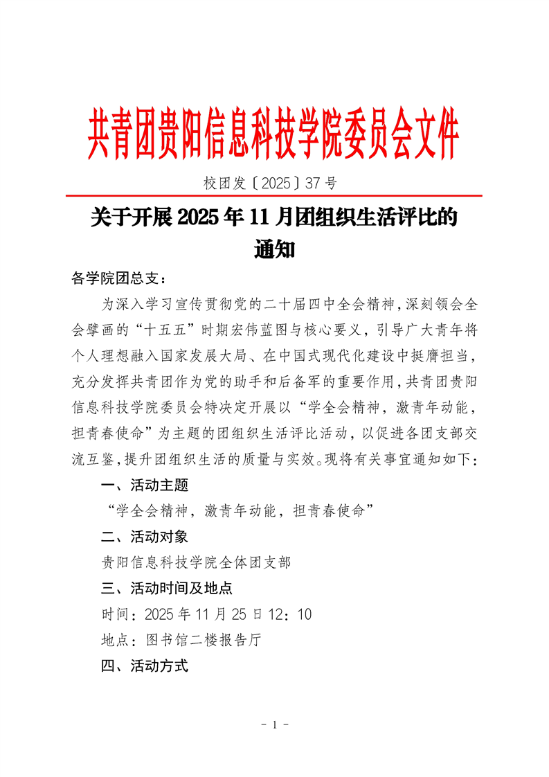 关于开展2025年11月团组织生活评比的通知