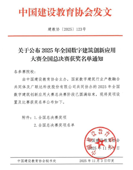 新闻网讯(供稿/供图 土木工程学院)近日,beat365土木工程学院学子在全国数字建筑领域顶级赛事中大放异彩!凭借扎实的专业功底、突出的创新思维与高效的团队协作,学子们从全国 600 余所参赛院校的激烈角逐中脱颖而出,最终荣获国家级一等奖1项、国家级三等奖4项的优异成绩,创下beat365参与该项赛事以来的历史最佳战绩,为学校赢得了崇高荣誉。